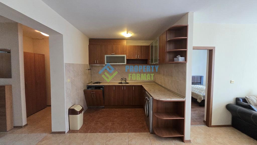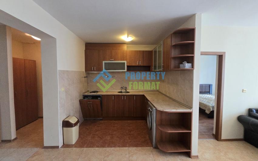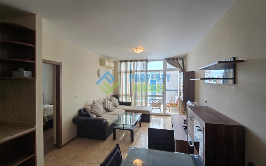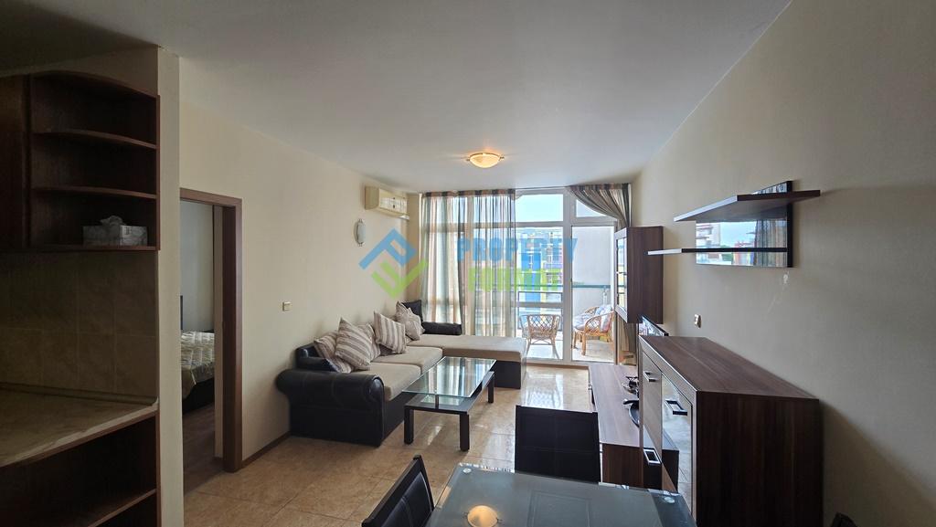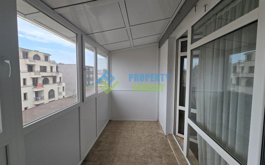 Апартамент располагает удобной планировкой: гостиная с кухонной зоной, две спальни, два санузла, две террасы и коридор. Просторный и комфортный вариант для постоянного проживания.