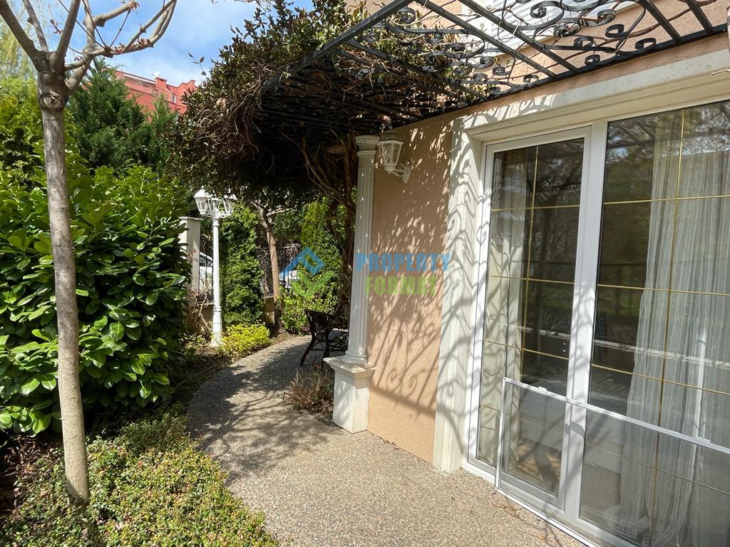 Апартамент площадью 90 квадратных метров находится на партерном этаже. Состоит из прихожей, гостиной с оборудованной кухней, 2 спален , ванной комнаты с душевой кабиной, большой террасы с собственным двориком. Апартамент очень светлый с большими окнами, в идеальном состоянии. Продается с мебелью и бытовой техникой.