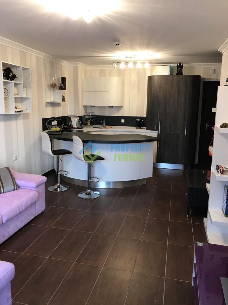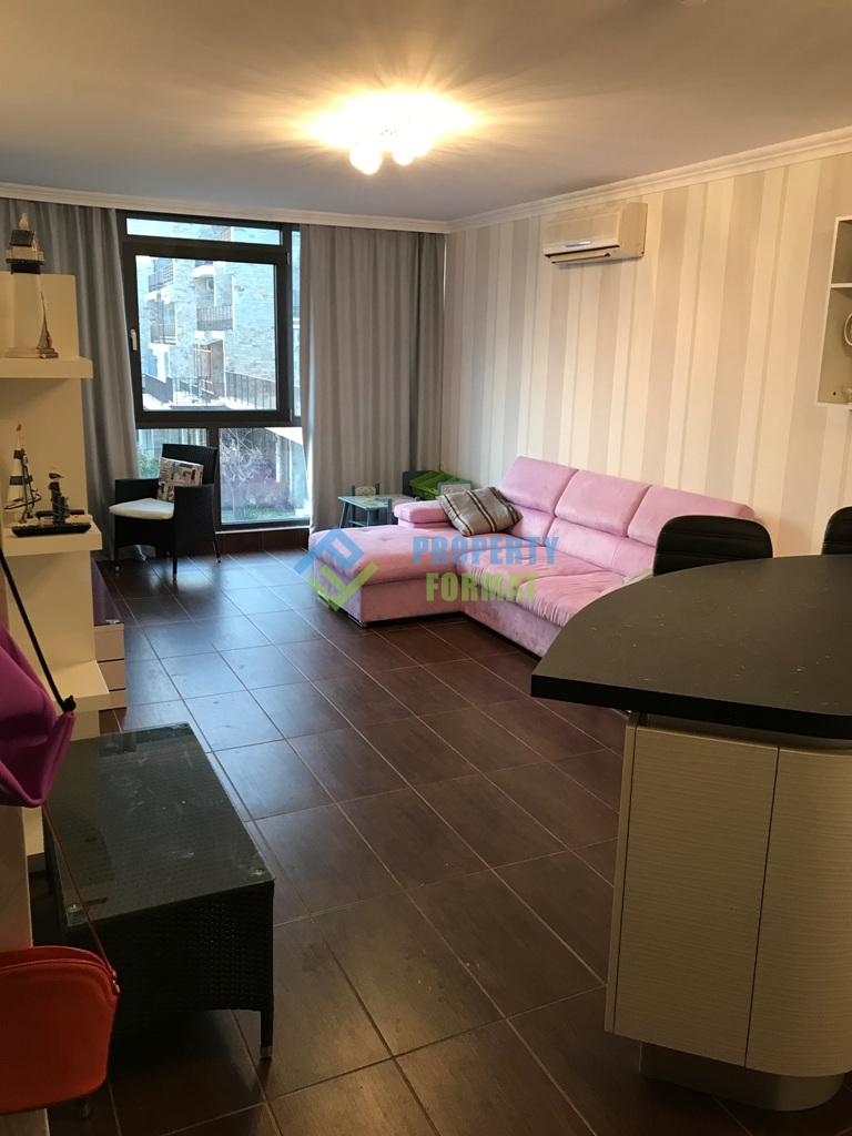 Квартира с отдельной спальней имеет великолепный бежево-коричневый интерьер, полностью меблирована и располагает необходимой бытовой техникой. Ванная комната оборудована душевой, раковиной, бойлером, унитазом. На уютной террасе обустроена мини зона отдыха с кальяном. Из окон и балкона апартамента открывается чудесный вид на территорию комплекса, Несебрский залив и побережье.