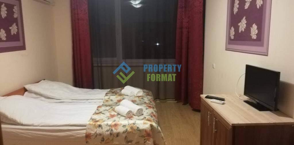Предлагаме ви апартамент с 1 спалня в Слънчев бряг, комплекс Холидей Форт. Намира се на втори жилищен етаж с площ от 65 кв.м. Обзаведен е с всичко необходимо, за живеене. Всекидневната е с две маси, холна и трапезна с столове, мека мебел, тв и климатик. Кухнята е оборудвана, има хладилник и пералня. Спалнята е обзаведена има тв и климатик. Банята е с душ кабина. Има тераса. Комплекса е с акт 16. Такса поддръжка 10 евро/кв.м.