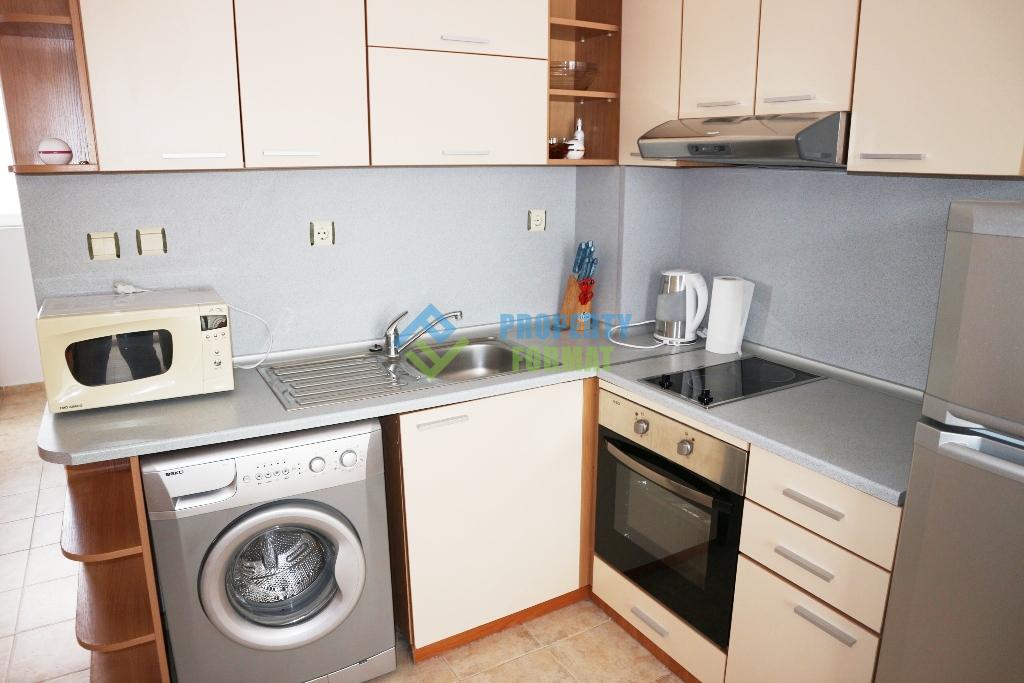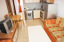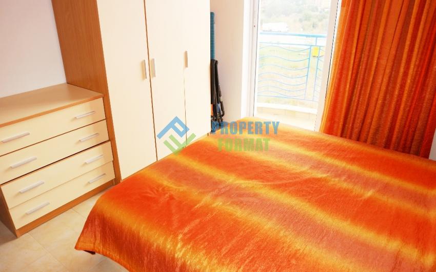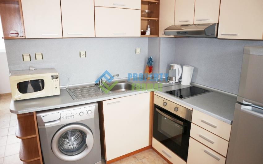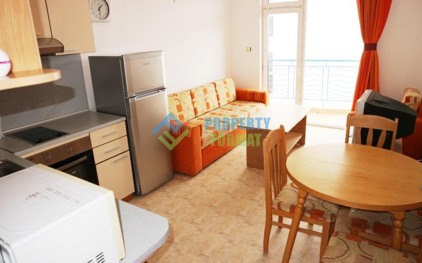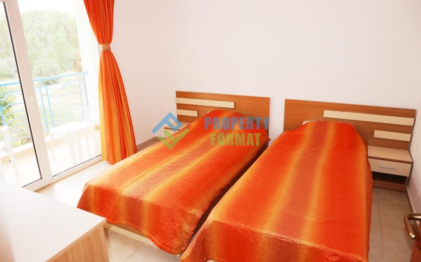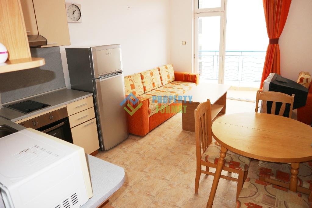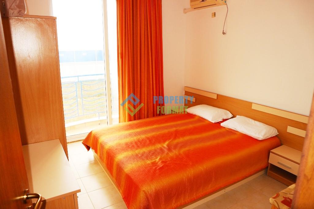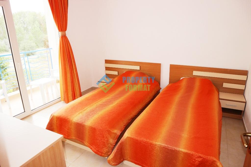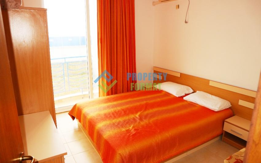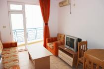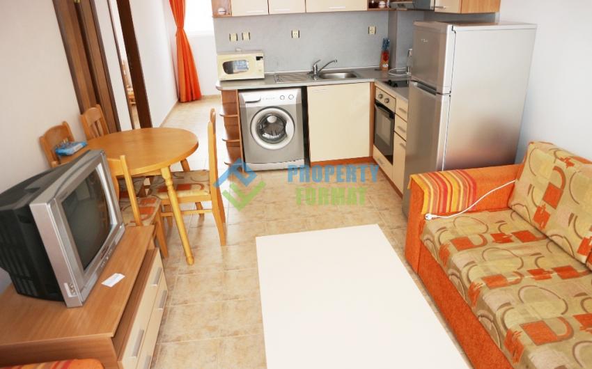 В един от най-известните курорти Слънчев бряг се предлага апартамент с две спални. Апартаментът е напълно оборудван с всичко необходимо, включително климатици и е подходящ за постоянно пребиваване на двама или четирима души. Модерен ъглов кухненски бокс оставя домакиня достатъчно място за готвене и съхранение на домакински уреди.