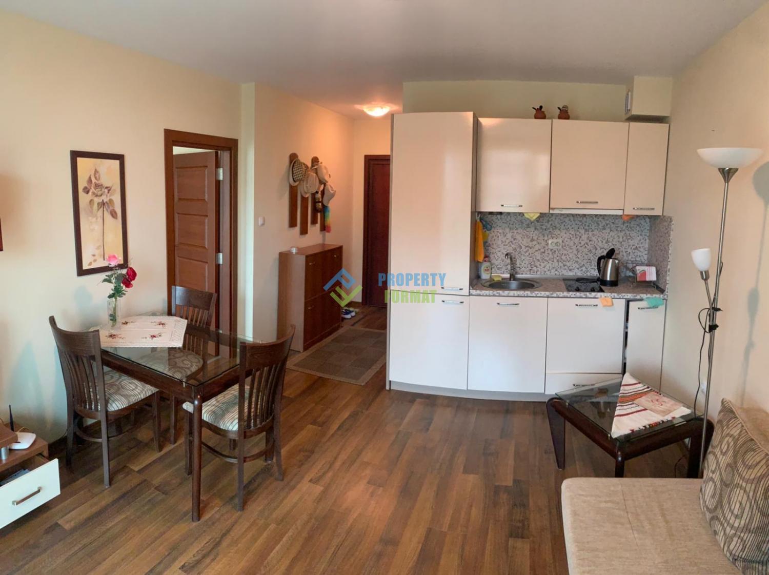 Предлагаме за продажба великолепен апартамент в комплекс Villa Monaco Свети Влас. Апартаментът се намира на висок партерен етаж, площта му е 60 кв. м. Състои се от антре, хол с кухненски бокс, 1 спалня, баня с тоалетна и тераса. Продава се оборудван с мебели и домакински уреди. Документите са готови за сделка, така че е възможна бърза продажба.