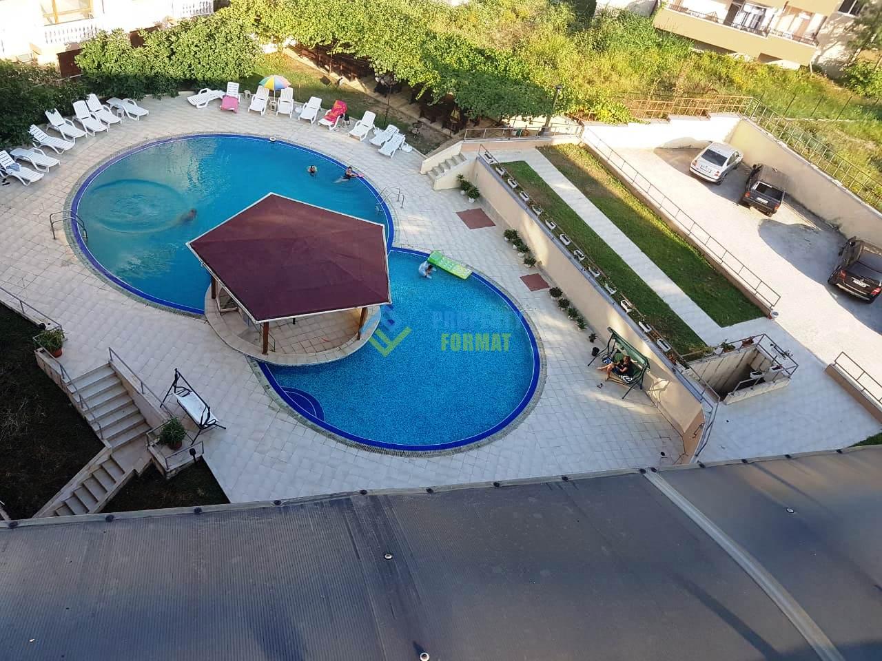 Модерен комплекс с чудесно обслужване и топла атмосфера има два асансьора, затворена придомовую територия, открити плувни басейни за възрастни и деца, зона за слънчеви бани и почивка с шезлонги, паркинг, охрана и други.