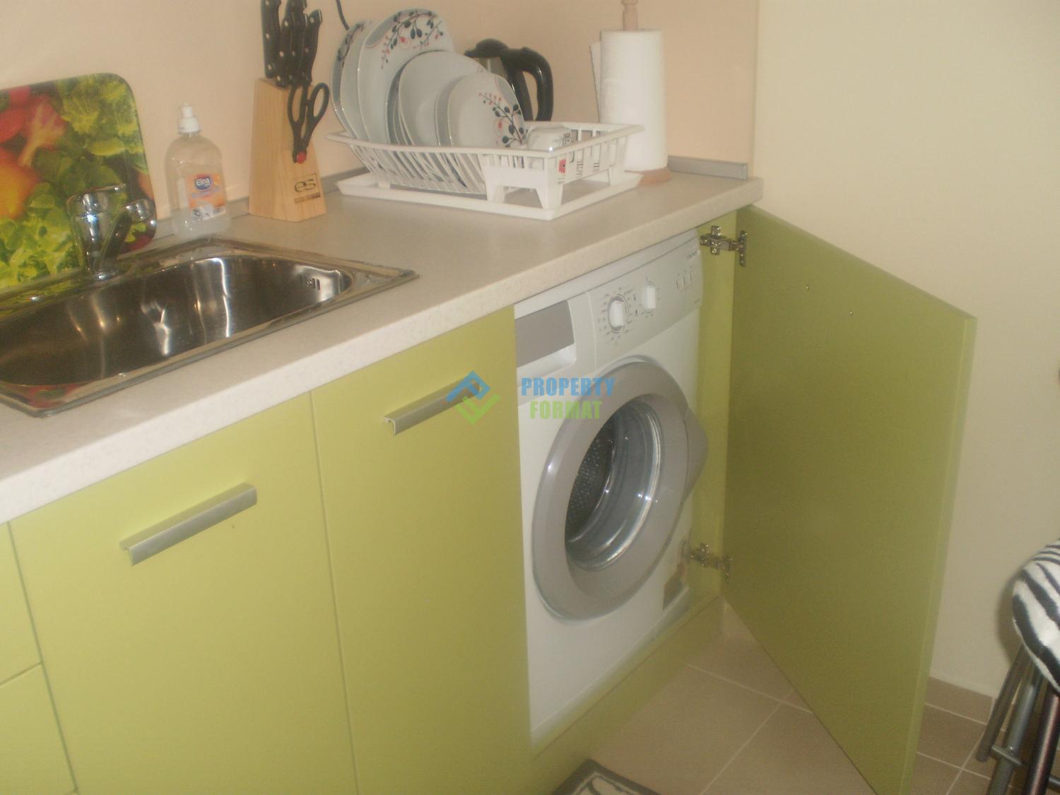 Просторен апартамент с бяло-салатовым интериор и е оборудвана с елегантни мебели за комфортен за почивка и престой. Вградена кухня разполага с индукционна печка, хладилник, микровълнова печка, пералня. Баня с тоалетна включва цялата необходима баня.
