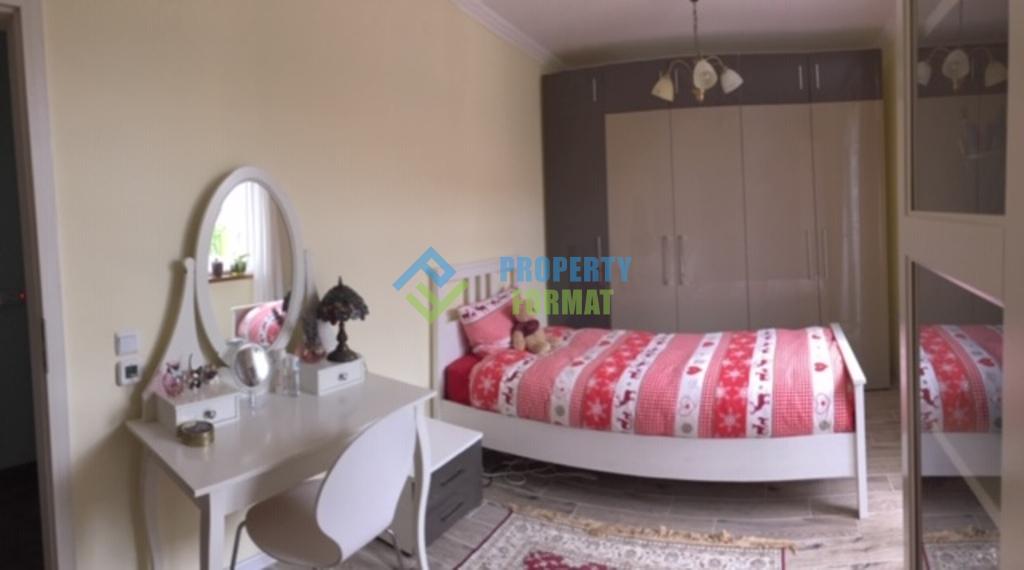 Просторен апартамент от 107 кв.м, който се състои от входно антре, дневна с кухненска част, две спални, баня и тераса. В цената на апартамента е включено и складово помещение в сутерена на къщата. При наличие на необходимите мебели, някои домакински уреди, в хола е монтирана камина. Срещу допълнително заплащане има възможност за закупуване на подземен гараж за автомобил. Чудесен вариант за преместване в България за постоянно пребиваване, т.к. няма такса за поддръжка.