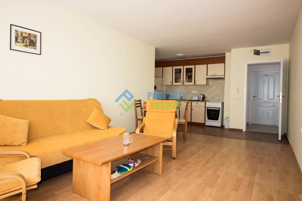 Апартаментът е с площ 71 кв. м се състои от антре, просторна всекидневна с кухненски бокс, отделна спалня, баня с тоалетна и тераса с ъглова изглед към морето и планината. Апартаментът е напълно обзаведен, оборудван с бяла техника, във всяка стая са монтирани климатици. Инфраструктура и функционалност на комплекса позволяват да живеят в него през цялата година, докато се наслаждавате на чудесен отдих.