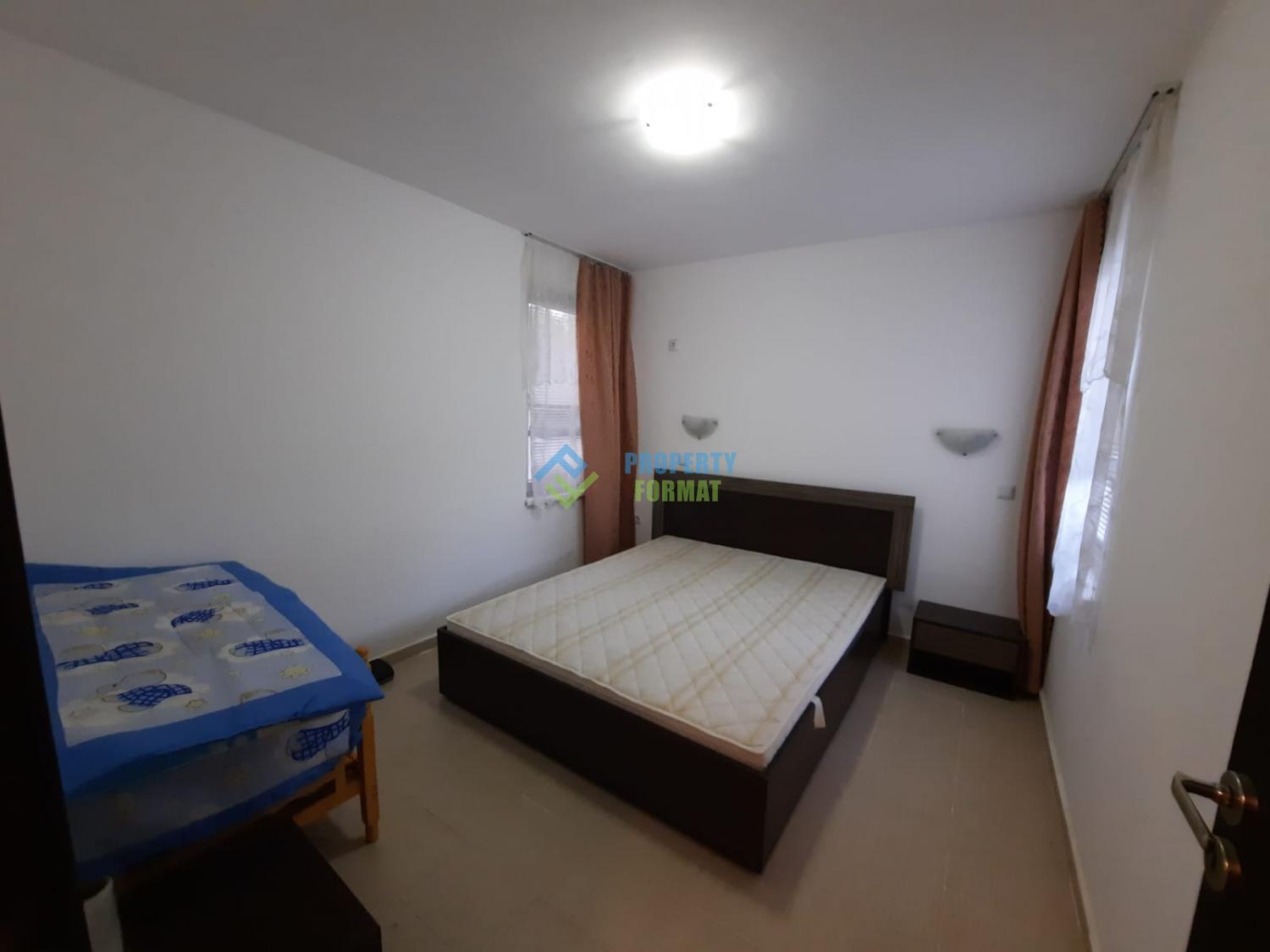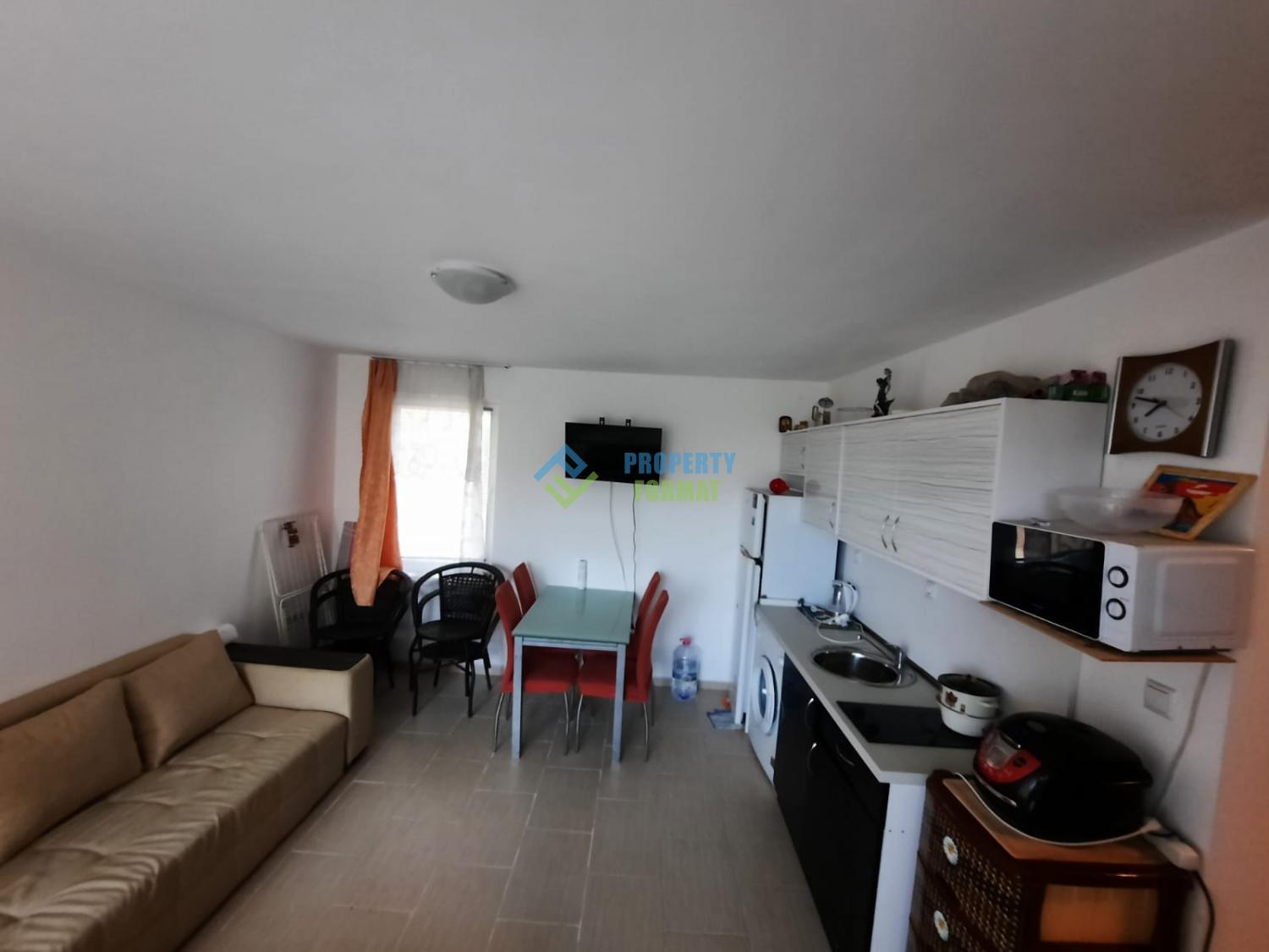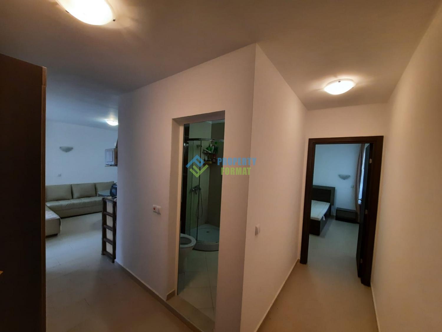 Апартаментът се намира на партерен етаж със самостоятелен достъп до просторна морава и достъп до басейна. Общата площ на апартамента е 59 кв.м. Апартаментът се състои от просторен коридор, който разделя дневната с кухненски боксс с излаз на терасата с уютна спалня. Апартаментът е напълно обзаведен и готов за постоянно живеене.
