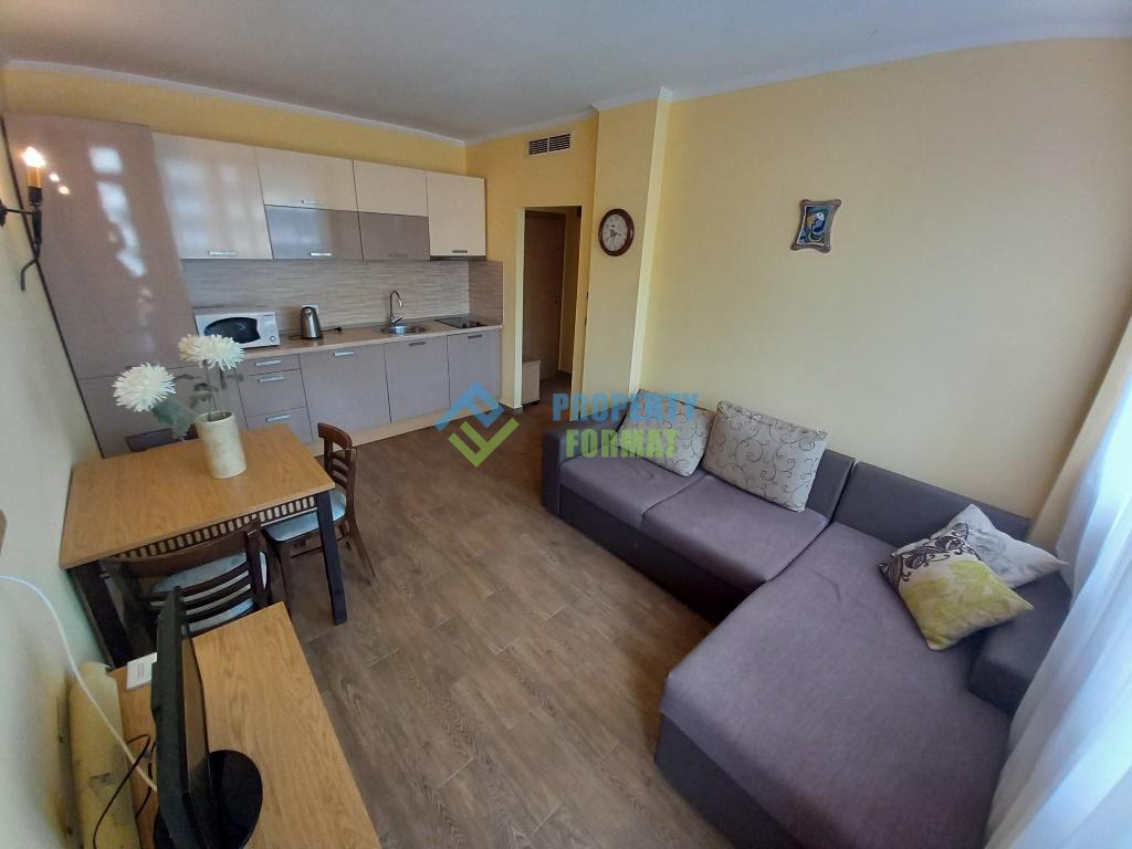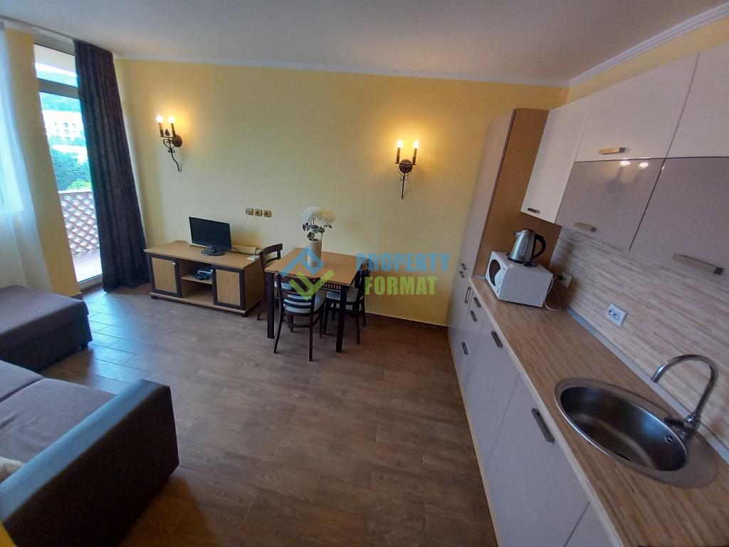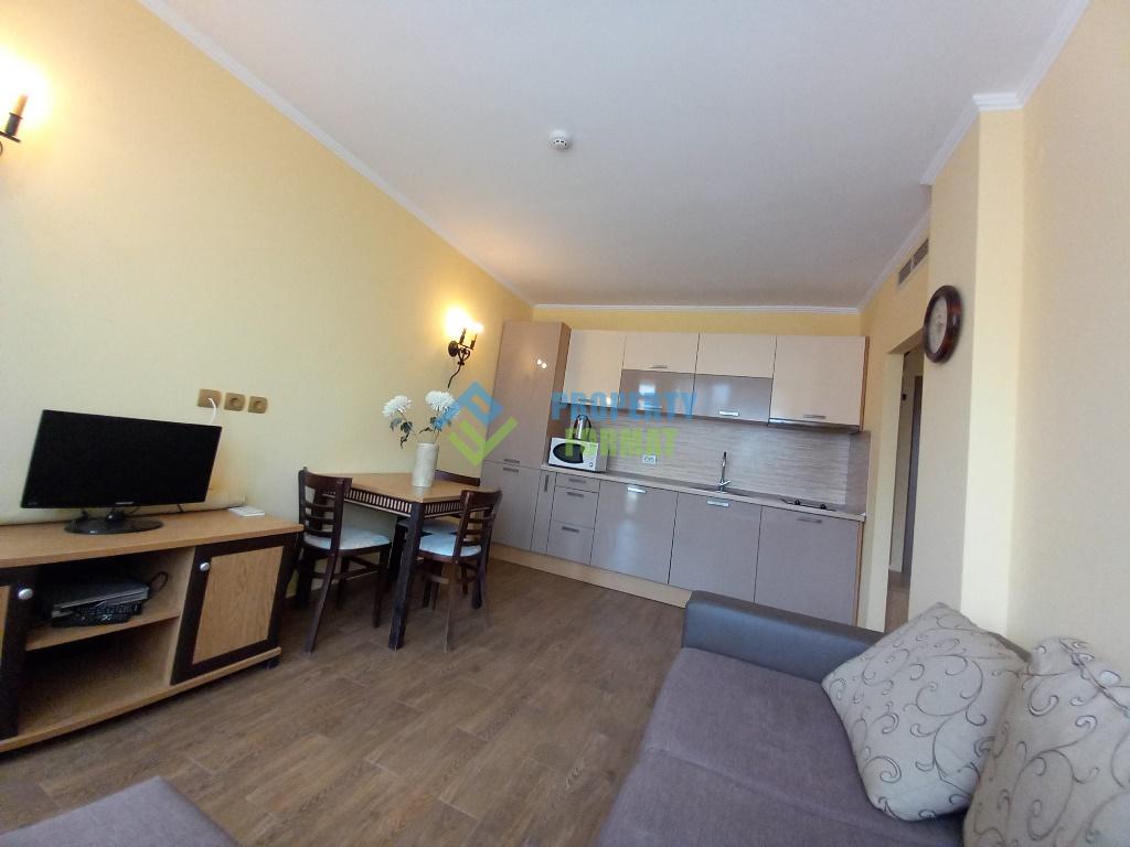Двустаен апартамент за продажба на първа линия в комплекс Атриум Бийч и е част от затвореното курортно селище Елените.