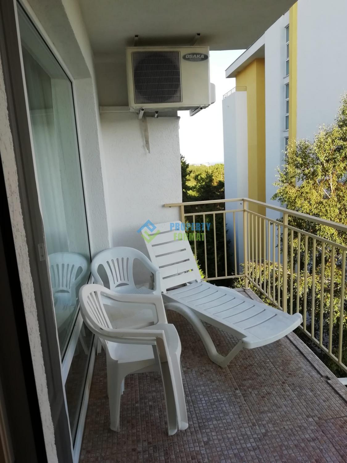 Продава се двустаен апартамент в комплекс Crown Fort, Свети Влас. Площта му е 75 кв.м.и се състои от хол с кухненски бокс, спалня, баня с тоалетна и тераса, на която можете спокойно да се насладите на почивката си сред зеленината и чистия въздух.