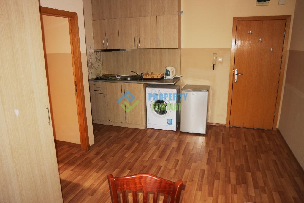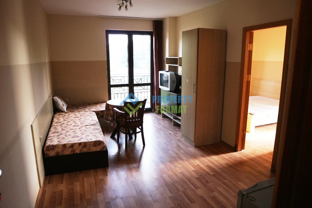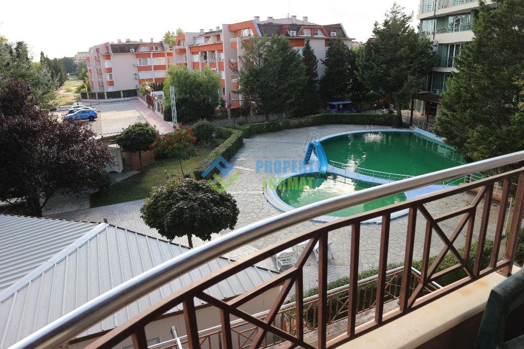 Предлагаме на вашето внимание апартамент с една спалня на втори етаж в 6-етажен комплекс с площ 55 кв.м. на 300 метра от морето. Компактната кухня на апартамента е оборудвана с пералня, всички мебели и уреди остават за новите собственици. Редът и чистотата се осигуряват от таксата за поддръжка от 8 евро на квадратен метър. Територията на комплекса се охранява, в близост има достатъчно място за паркиране на автомобили.