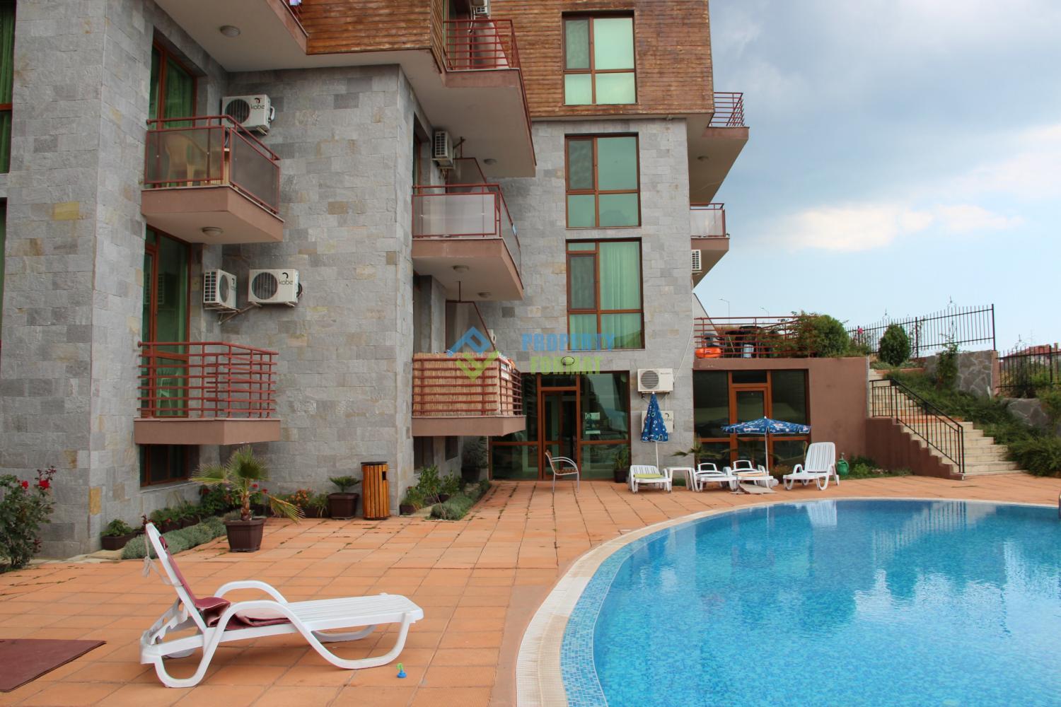 Продава се прекрасен двустаен апартамент в Кошарица на ниска цена! Апартаментът е с прекрасна гледка към морето и курорта Слънчев бряг. Комплекс Golden Eye се състои от няколко четири и пететажни сгради. Благодарение на местоположението си ще се отпуснете в тишина и спокойствие. Комплексът разполага с басейн за възрастни и деца, малка детска площадка, паркинг. Има акт 16. Такса поддръжка - 450 евро на година.