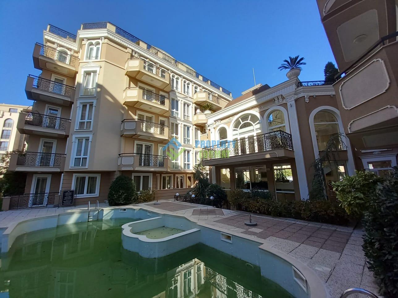 Двустаен апартамент се намира в елитния комплекс Down Park Deluxe с изискана архитектура. Комплексът се намира в северната част на Слънчев бряг, на пешеходно разстояние от плажа.