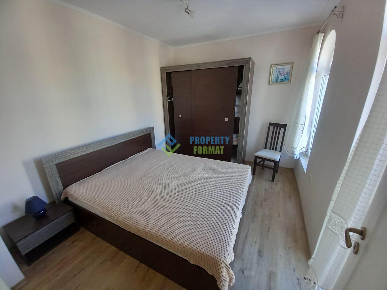 Апартаментът се намира на 4-ти етаж и е със следното разпределение: дневна с кухненска част, спалня, коридор и санитарен възел. Напълно оборудван с мебели и електроуреди.