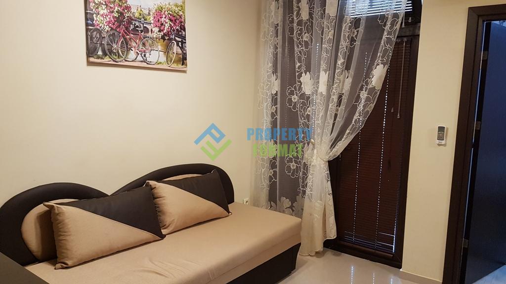 Продава се двустаен апартамент в Равда в комплекс Лагуна Бийч. Апартаментът се намира на първи етаж и е с малка площ. Трябва да се отбележи, че терасата в апартамента е бонус. Данък и такса поддръжка се плащат само от площта на апартамента без тераса. Апартаментът се продава напълно обзаведен с модерни мебели и уреди.