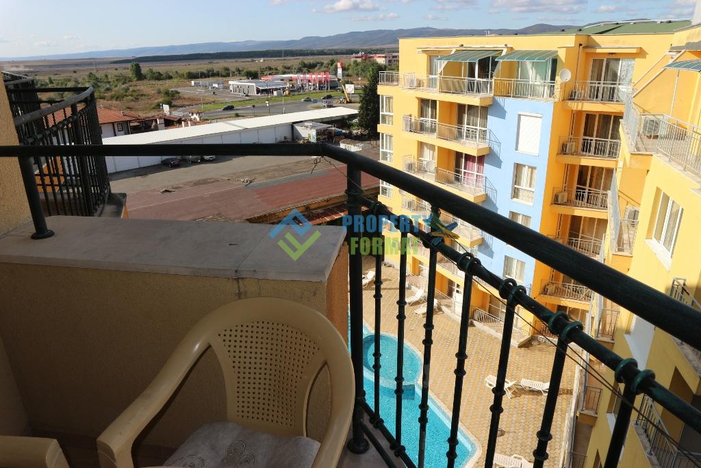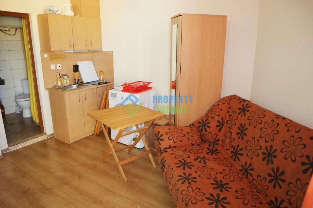 Продава се евтино студио на 6 етаж в комплекс Amadeus 5. Апартаментът е напълно обзаведен и готов за живеене от новите собственици.