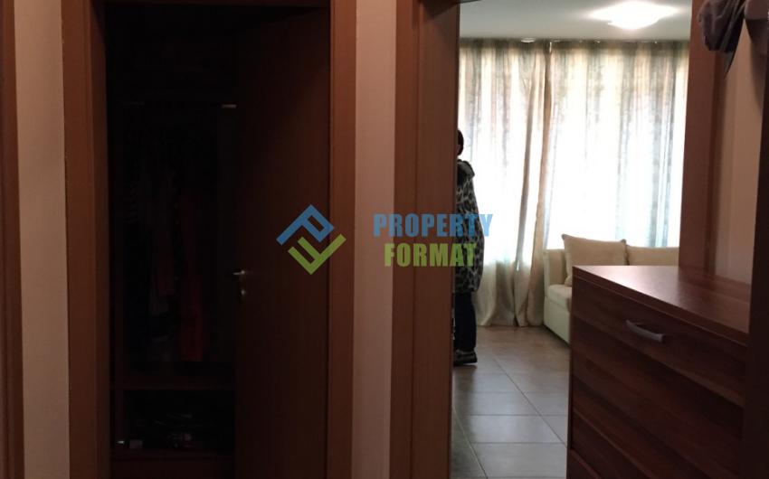 Апартаментът е с площ от 75 кв. м. има входно антре, хол с кухненски бокс, отделна спалня, баня с тоалетна, остъклен балкон, гардеробна без прозорци, от която по желание може да се направи малка спалня. Апартаментът е с мека мебел, кухненският кът е оборудван с вградени уреди, в спалнята има климатик. Благодарение на ниската такса поддръжка в апартамента е възможно целогодишно живеене.