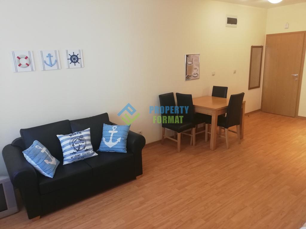 Продава се красиво студио на първа линия на морето в елитния комплекс Garden of Eden. Местоположението на апартамента е шикозно - на 100 метра от пясъчен плаж, развлечения и друга инфраструктура. Ето защо си струва да закупите този апартамент, който сега е на много атрактивна цена, намиращ се в престижен район и с добро обслужване. Райската градина включва няколко блока с апартаменти на площ от 70 000 кв.м. Райският комплекс е огромен оазис с малки декоративни реки, фенери, пейки и пътеки, потънали в много зеленина и цветя. За почиващите се предлагат няколко басейна, СПА център, барове, ресторанти, кафенета, детски площадки, аниматори, нощен клуб, фитнес зала, футболно игрище, два тенис корта, охрана, паркинг и много други. Просторно студио с площ от 47 кв.м разполага с всичко необходимо за комфортен живот и отдих. Единствената стая е разделена на кухненска част и зона за отдих, като по този начин се създават допълнителни удобства. Жилището е напълно обзаведено и оборудвано с домакински уреди. Банята е с вана, мивка с огледало, тоалетна, бойлер. От балкона можете да наблюдавате великолепната територия на комплекса и околността.