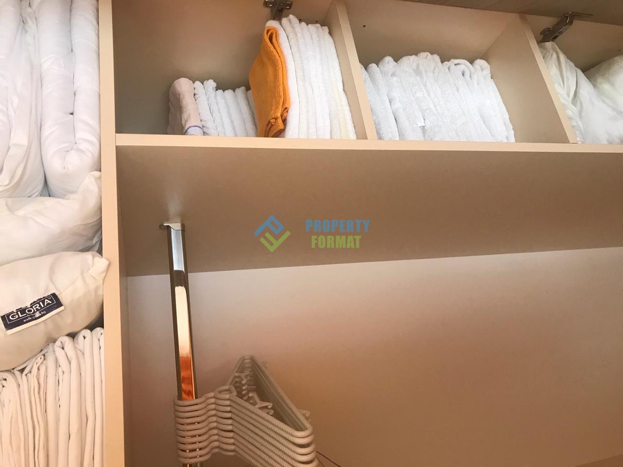 Двухкомнатный апартамент полностью обставлен мебелью, в распоряжении бытовые и спальные принадлежности. Из техники в наличии электроплита, духовка, вытяжка, холодильник, электрочайник, телевизор, кондиционер. Санузел оборудован привычной сантехникой. С просторной террасы открывается замечательный вид на территорию комплекса с бассейном.