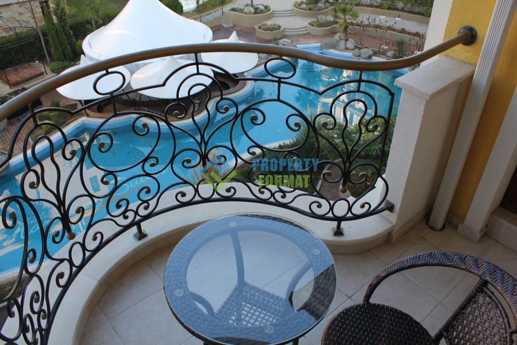Продава се отлично оборудван апартамент в Harmony Suites Monte Carlo в Слънчев Бряг, който е точно подходящ за ценителите на уюта, комфорта, лукса, съчетан с обслужване и удобства от премиум класа. Този луксозен комплекс разположен на пешеходно разстояние от центъра на популярния курорт Слънчев Бряг, на 400 метра от морето и плажа.