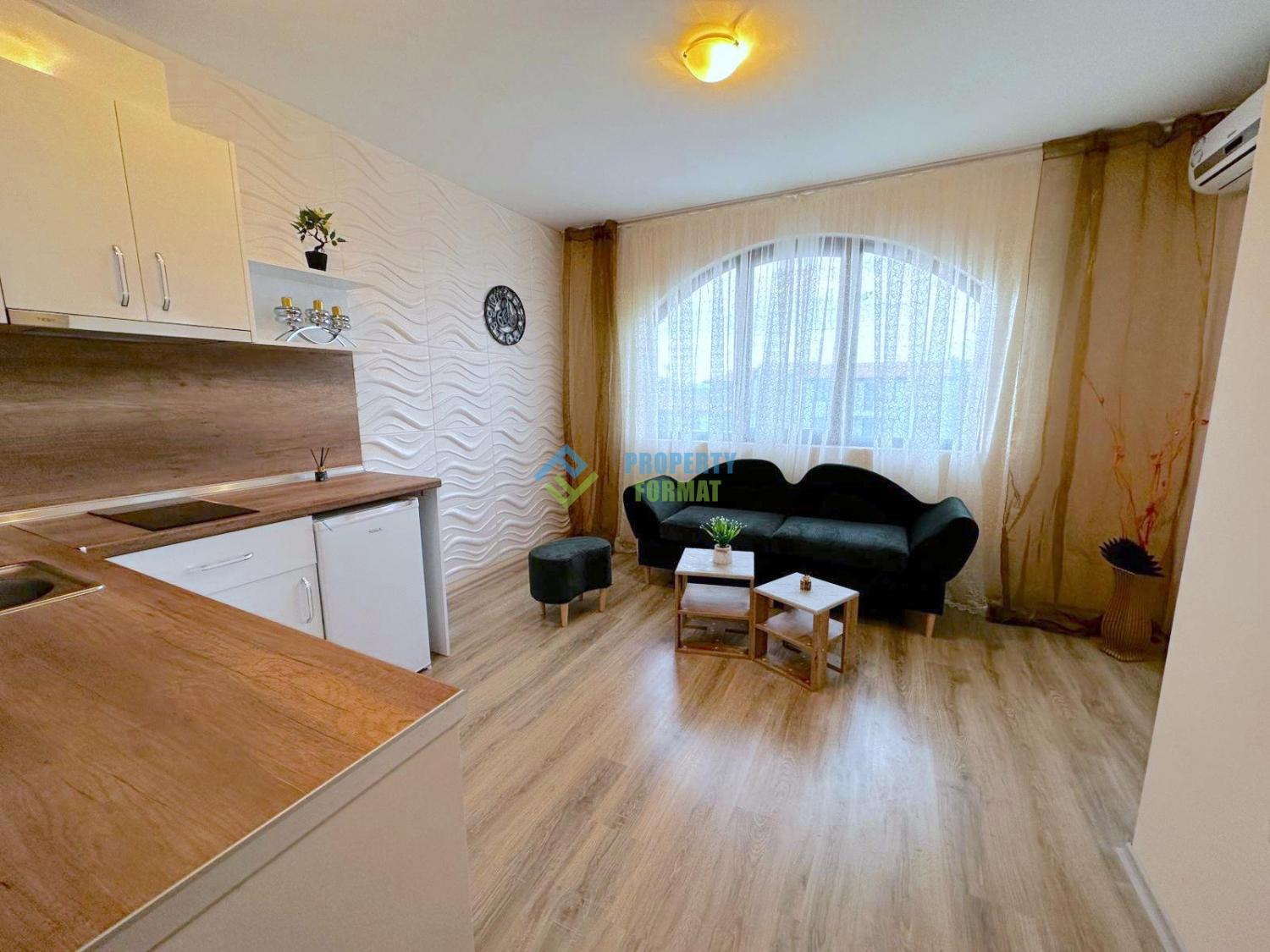 Представяме на вашето внимание двустаен апартамент в комплекс Apollon 9, Равда. Този красив апартамент е една много добра инвестиция- както за лично ползване, така и за отдаване под наем. Състои се от коридор, хол с кухненски бокс, 1 спалня, баня с тоалетна и тераса с гледка море.