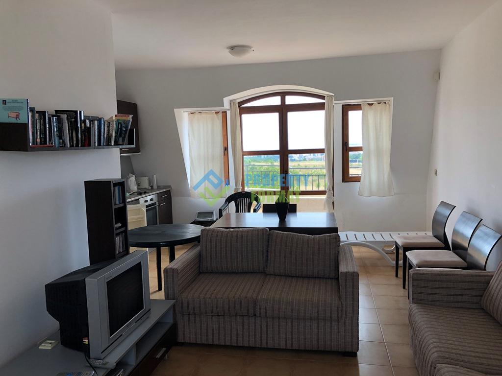Комфортабельная квартира имеет следующее распределение: прихожая, гостиная с кухонной зоной, две спальни, два санузла, терраса. Апартамент меблирован, оборудован бытовой техникой, кухонными и спальными принадлежностями. С террасы открывается безупречный вид на морскую панораму и курорт Солнечный берег.