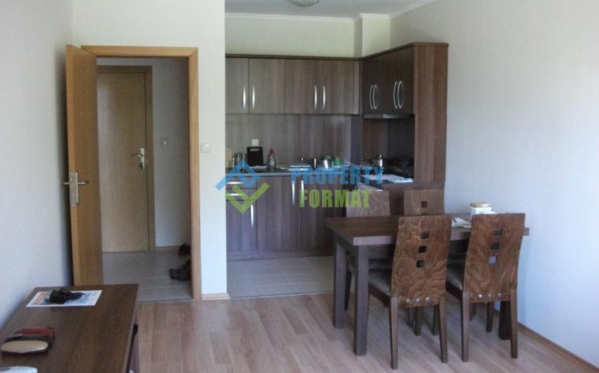 Простият и удобен апартамент разполага с класически мебели, кухненски кът с вградени уреди, хладилник, климатик, телевизор. От всяка стая е предвиден излаз на балкон с изглед към територията на комплекса. Добра инвестиция на атрактивна цена с добро местоположение на брега.