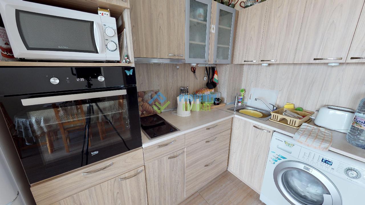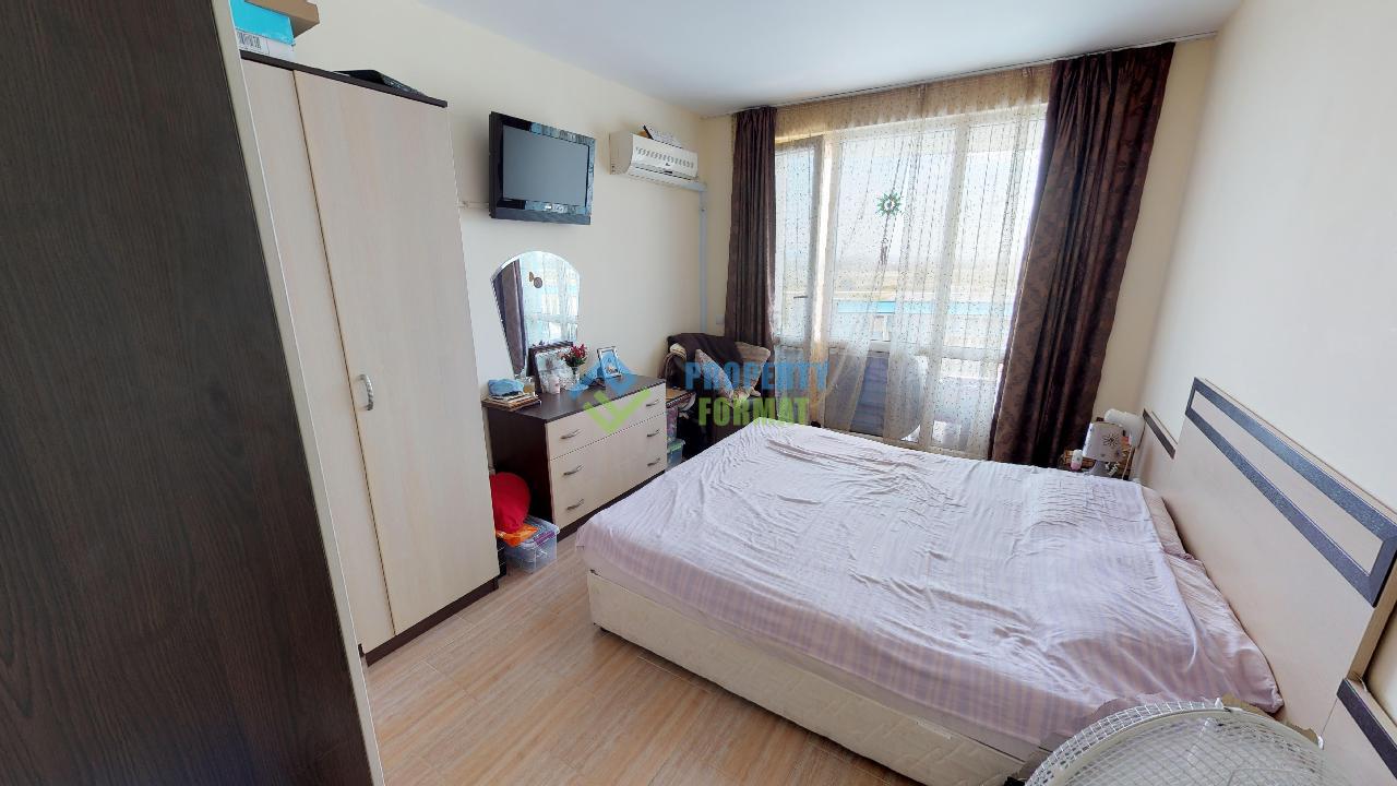 Този апартамент е напълно обзаведен с класически мебели, климатик и телевизор са монтирани във всяка от двете стаи. Кухненският блок е напълно оборудван с вградени уреди. Балконът е с изглед към басейна и живописните околности. Приятен бонус при покупка на апартамент е, че в цената е включена платената такса поддръжка за 2020 година.