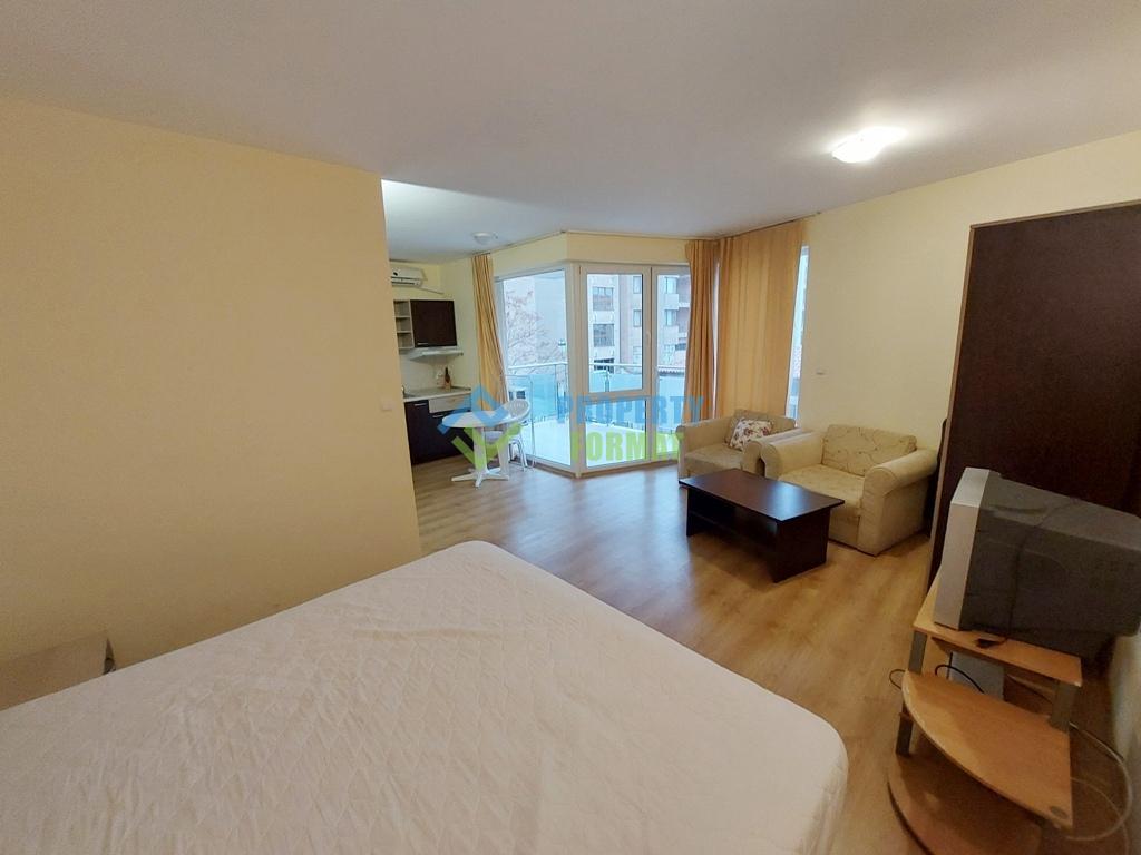Предлагаме студио в комплекс Vechna R, който се намира в южната част на Слънчев бряг в близост до известния плаж Какао Бийч. Апартаментът се намира на втори етаж, с изглед към зелената площ на съседния комплекс. Апартаментът се продава с напълно обзаведени мебели и уреди. Големите френски прозорци все още подсилват впечатлението за голямо пространство, площта на студиото е 47 квадратни метра. В компактната територия на комплекса е разположен басейн с шезлонги.