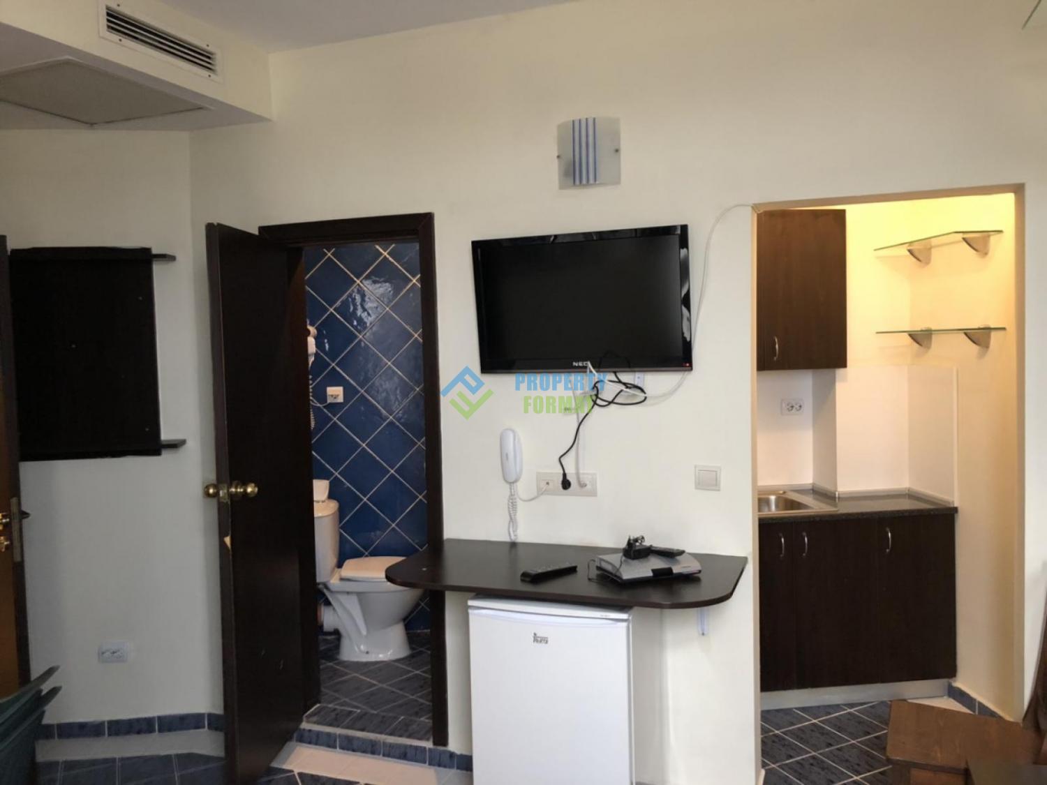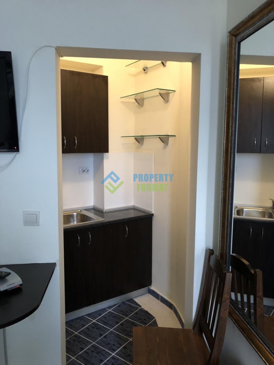 Компактното студио е оборудвано с необходимите мебели, малък кухненски кът с котлони и мивка, хладилник, печка. Апартаментът разполага с централна климатизация, телевизор с плосък екран и сателитни телевизионни канали, Wi-Fi, телефон.
