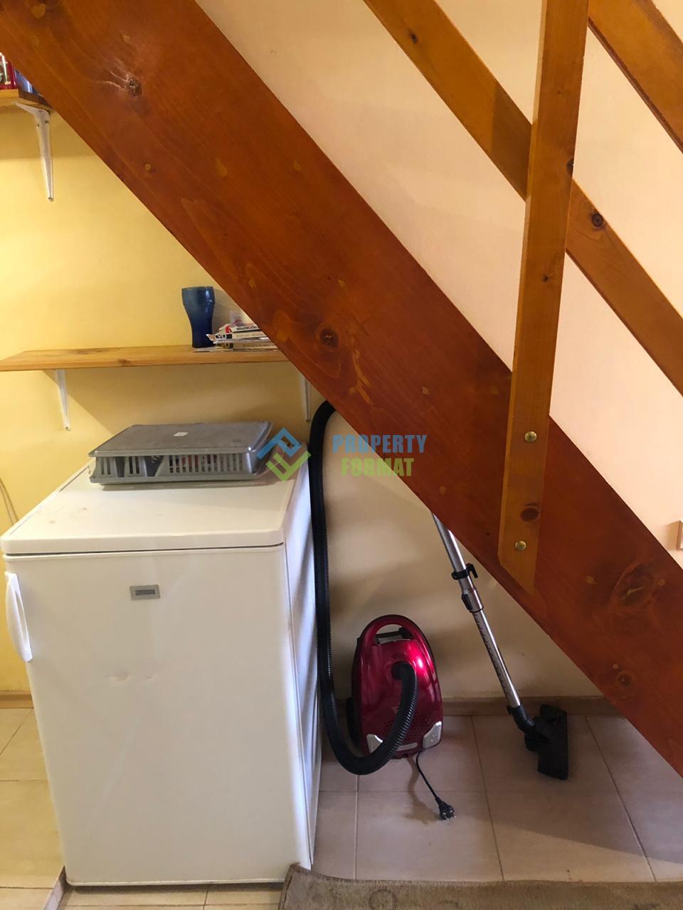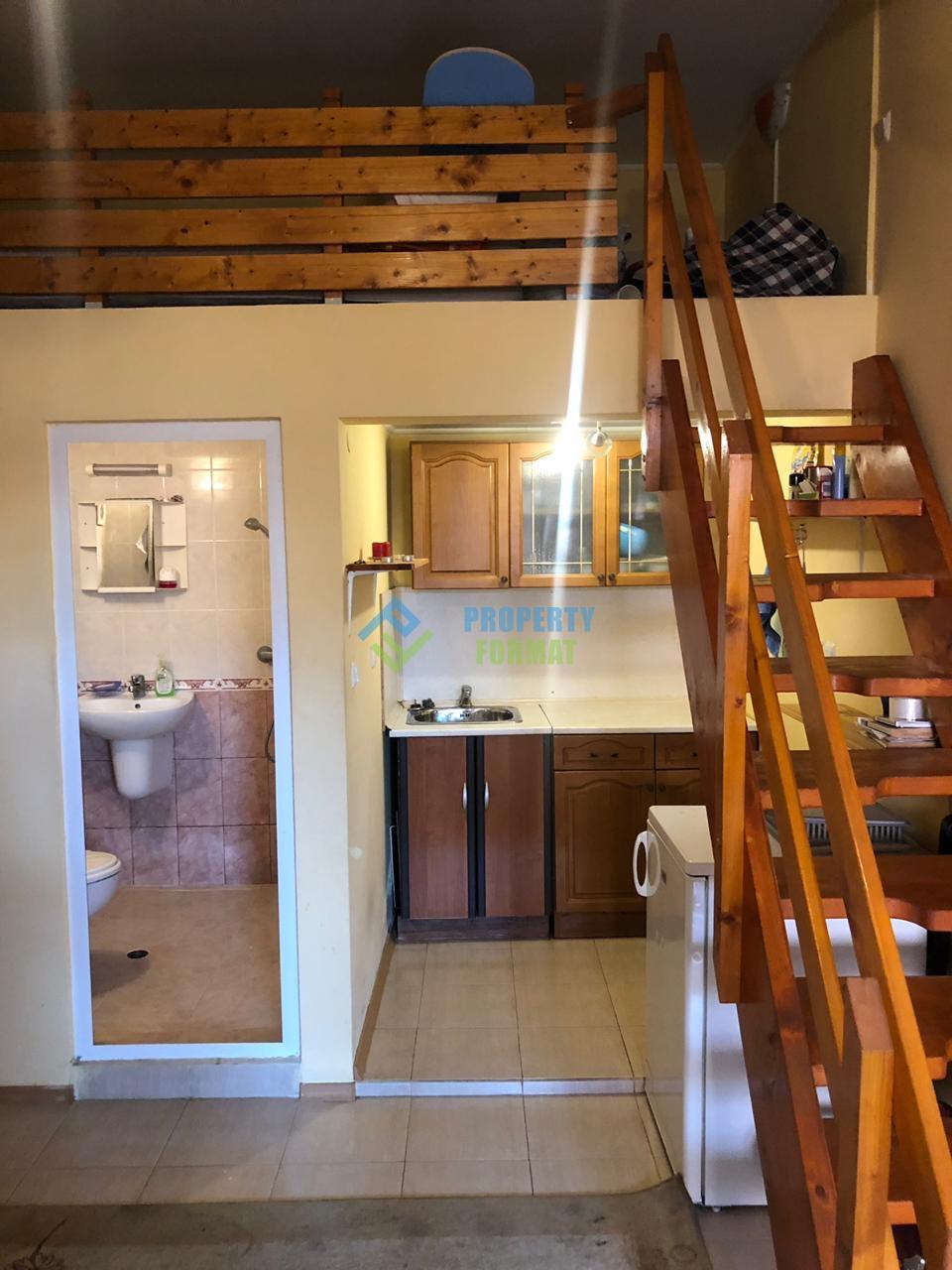 Жилищното студио с площ от 24 кв. м е разделено на две нива: на първото кухненско помещение и хол, на второто ниво можете да направите място за спане или килер. До обособения втори етаж води дървена стълба. Апартаментът разполага с необходимите мебели и някои домакински уреди. На закритата тераса има кът за сядане с люлки и седалки. Чудесен вариант на приемлива цена за пенсионери или млада двойка.