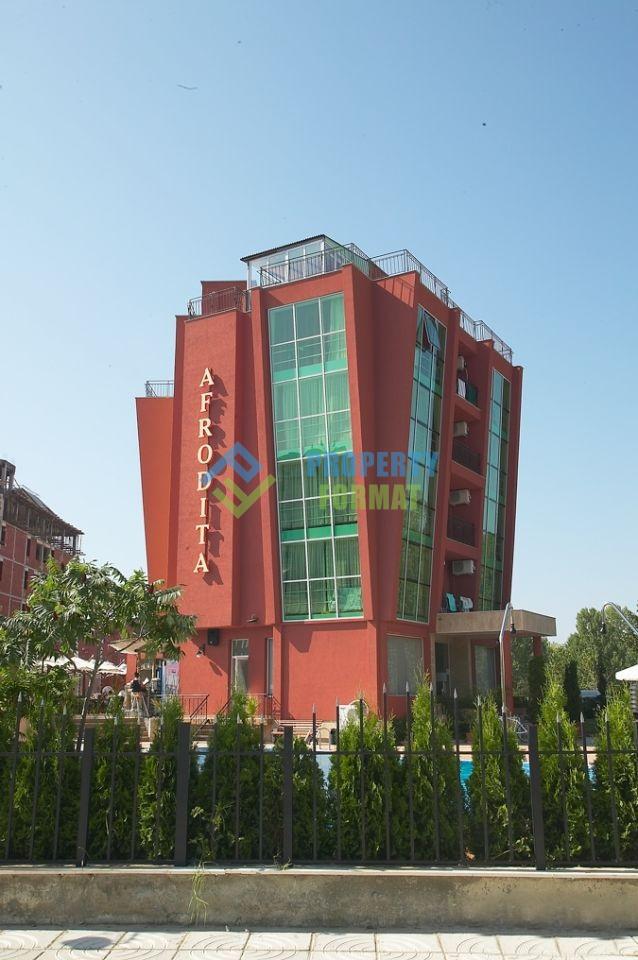 Ярък и запомнящ се комплекс с големи панорамни прозорци, привлича вниманието както на местния жител, така и на задграничния турист. Aphrodite 1 е първият от комплексите на огромната Aphrodite apartment network. В затворена територия на разположение на почиващите е открит басейн с детско отделение, зона за слънчеви бани и почивка с шезлонги и чадъри, пейзаж озеленяване, детска площадка, ресторант, лоби бар, паркинг, денонощна охрана.