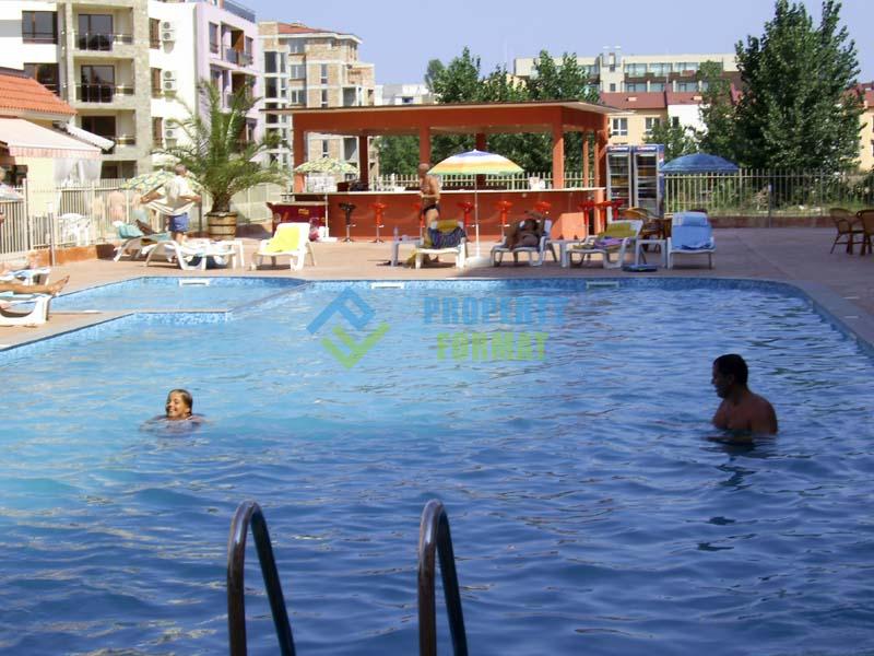 Жилището се намира на първи етаж в жилищен комплекс Балкан Бриз 2 в тиха и спокойна част на курортния град Слънчев бряг.