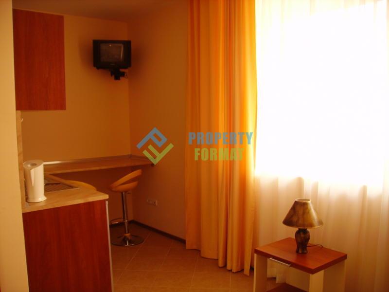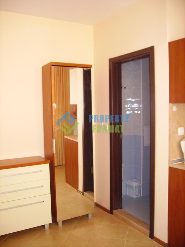 Жилището е напълно обзаведено: разполага с разтегателен диван, скрин, малък гардероб, бар столове, мини хладилник, печка и телевизор.