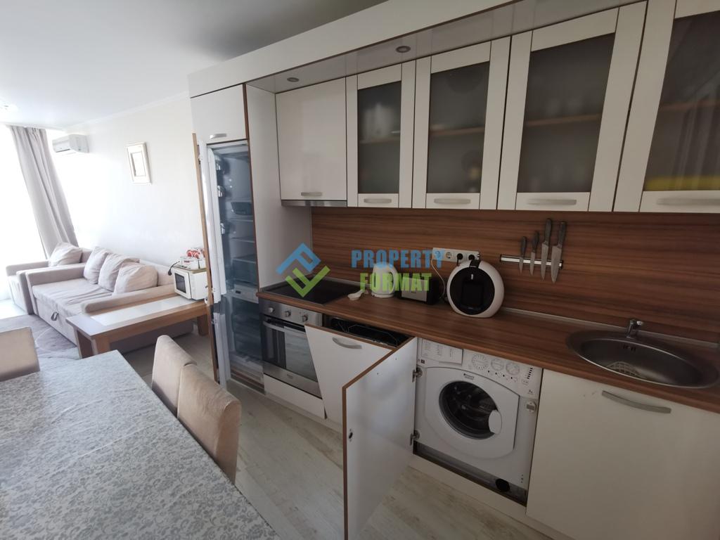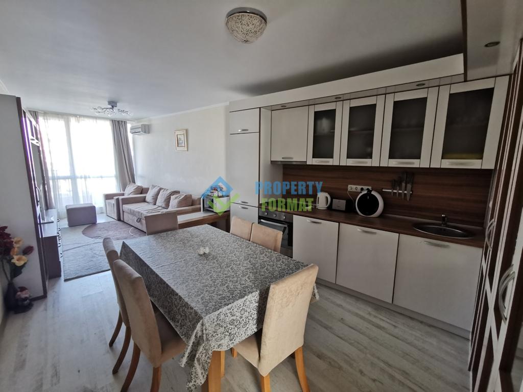 Апартаментът е с обща площ от 76 кв. м. намира се на втори комфортен етаж, има асансьор. Апартаментът е с изглед към двете страни и има много любимо оформление-raspashonku. вартира е обзаведена с изключително качествени и напълно обзаведени мебели. Има всичко необходимо за готвене и домакинство с удоволствие. Зоната за отдих и спалните също се отличават със своя комфорт и детайлност. Златистият пясък на плажа е само на 200 метра, заобиколен от най-елитните комплекси не само на Черноморец, но и на цяла България.