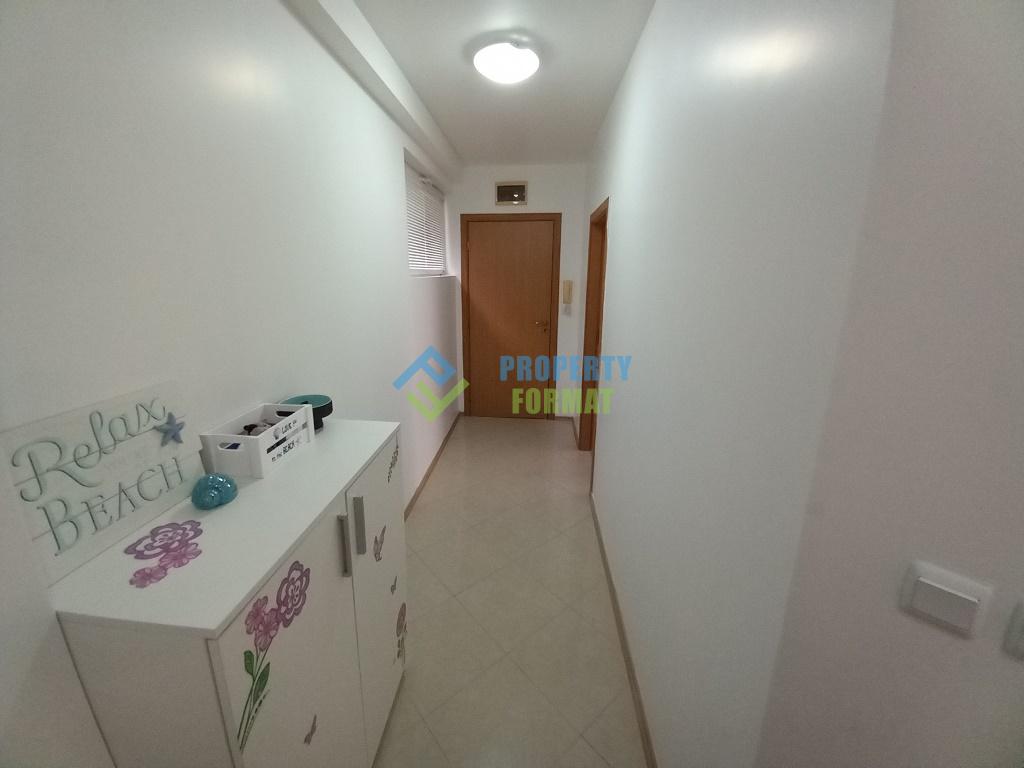 Апартаментът се намира на първи етаж, с площ от 100 кв.м и включва коридор, две самостоятелни спални, всекидневна с кухня, баня с душ и две просторни тераси. Апартаментът се продава напълно оборудван с модерни мебели и уреди, включително мебели от ратан, които създават шикозен интериор на вашата тераса и приятна почивка в горещия летен ден.