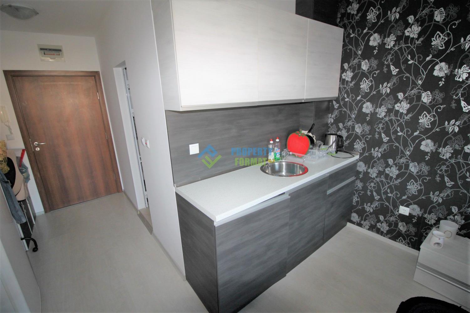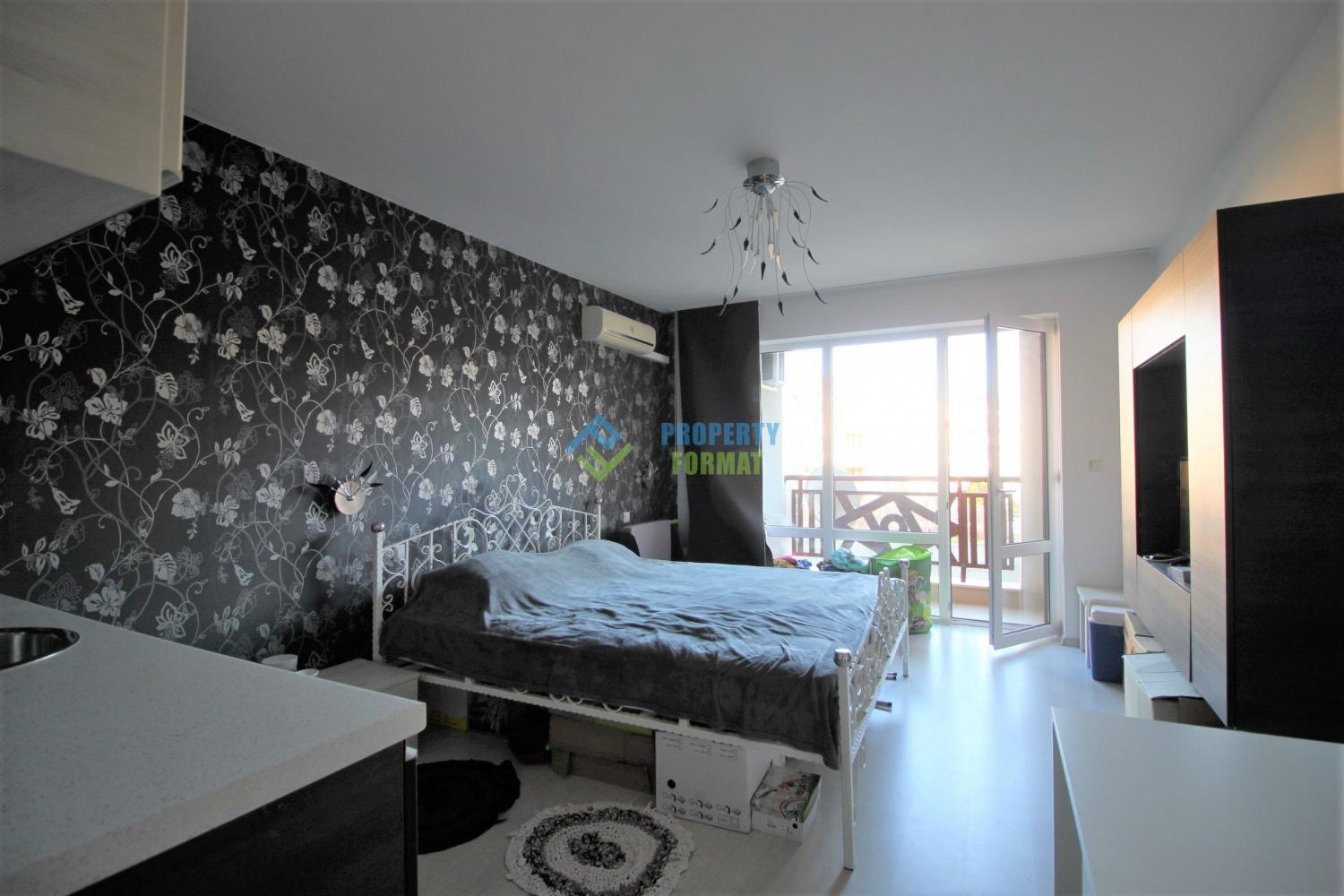 Предлагаем вашему вниманию студию в 250 метрах от моря в комплексе Royal Palm. Интерьер квартиры выдержан в монохромной гамме. Окна и балкон выходят на внутреннюю территорию и бассейн. Вся мебель и техника остается для новых хозяев. На ухоженной зеленой территории комплекса находится 2 бассейна, детская площадка и минибар. Территория охраняется, рядом достаточно места для парковки машины.