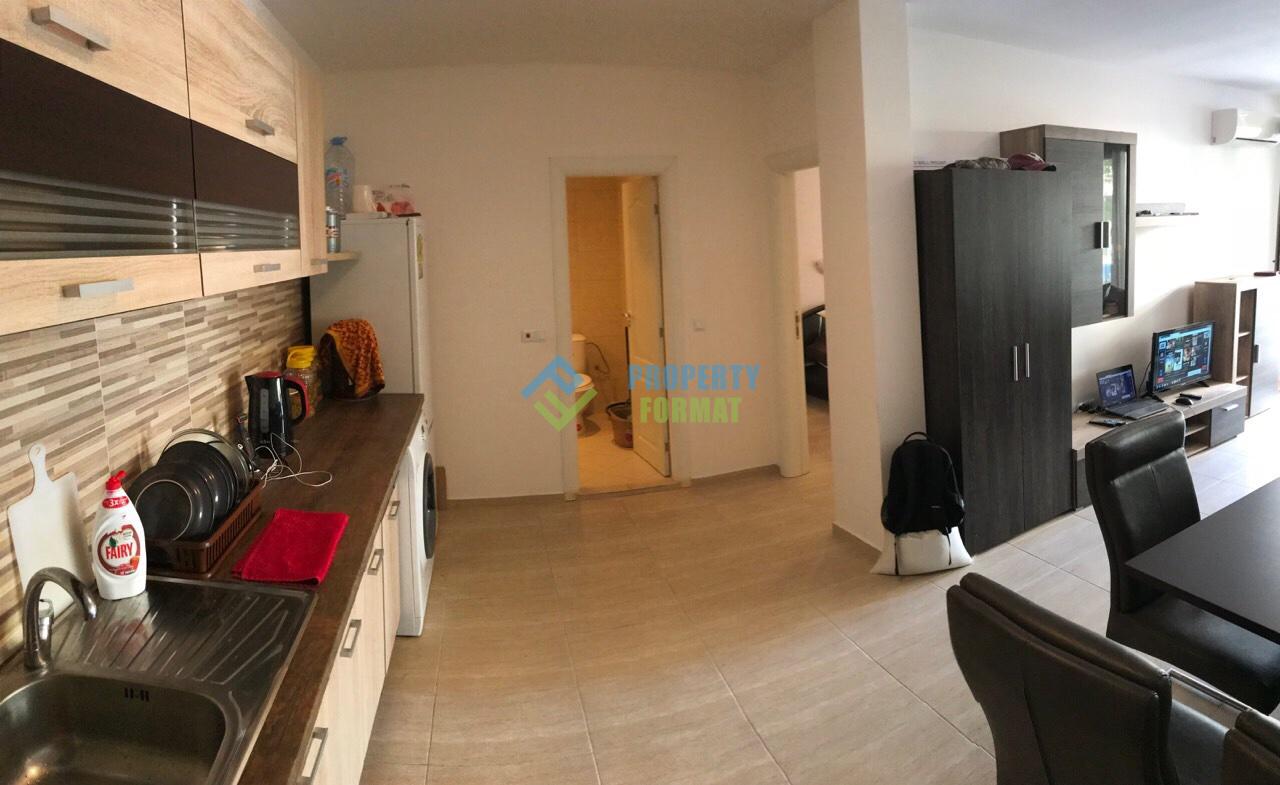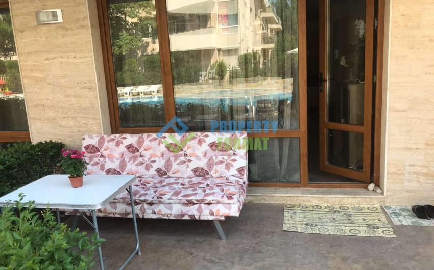 Прекрасный апартамент с отдельной спальней располагает функциональностью, пространство оптимально использовано, имеется собственный дворик с диванчиком и столом. Также в квартире предусмотрена нужная мебель, встроенная бытовая техника, кондиционер и телевизор. Качественный сервис, наличие растительности вокруг создают благоприятную атмосферу для приятного отдыха на болгарском побережье.