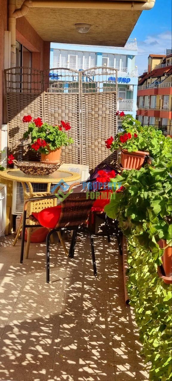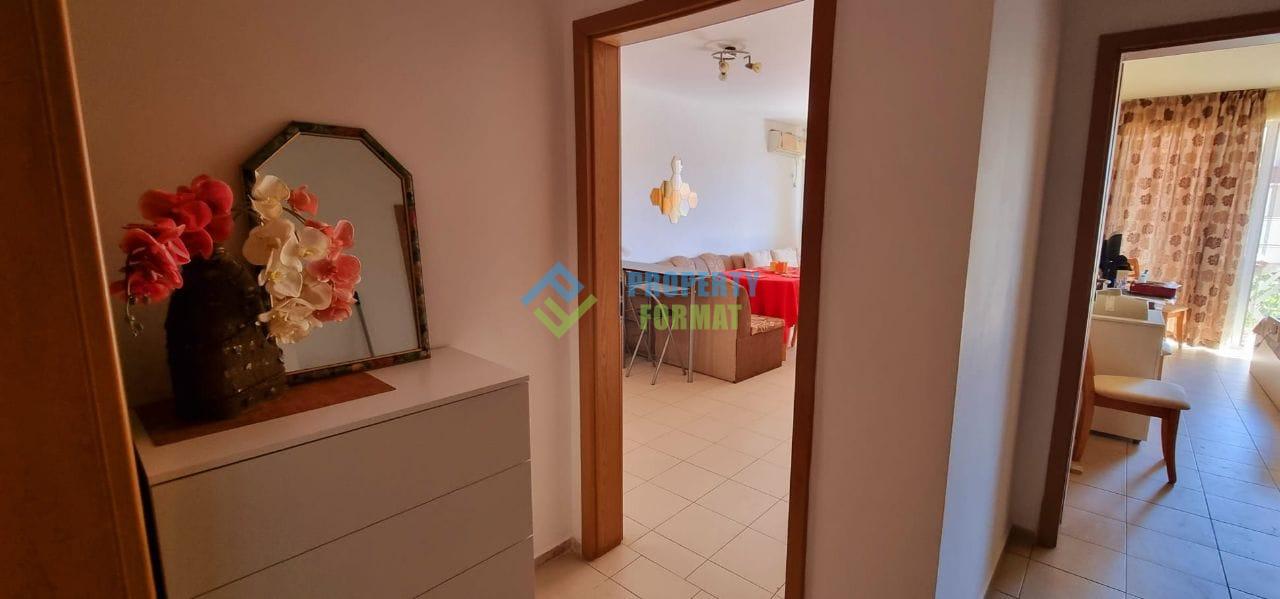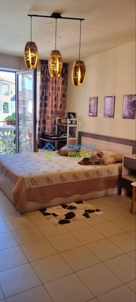 Представляем Вашему вниманию аккуратную двухкомнатную квартиру в жилом доме в районе Аурелия, г. Несебр. Гостеприимно и тепло обставлено, войдя внутрь чувствуешь себя как дома. Просторная гостиная с кухней, уютная спальня и терраса с красивыми цветами, создающими ощущение спокойствия. В квартире есть подвал 4 кв.м.
