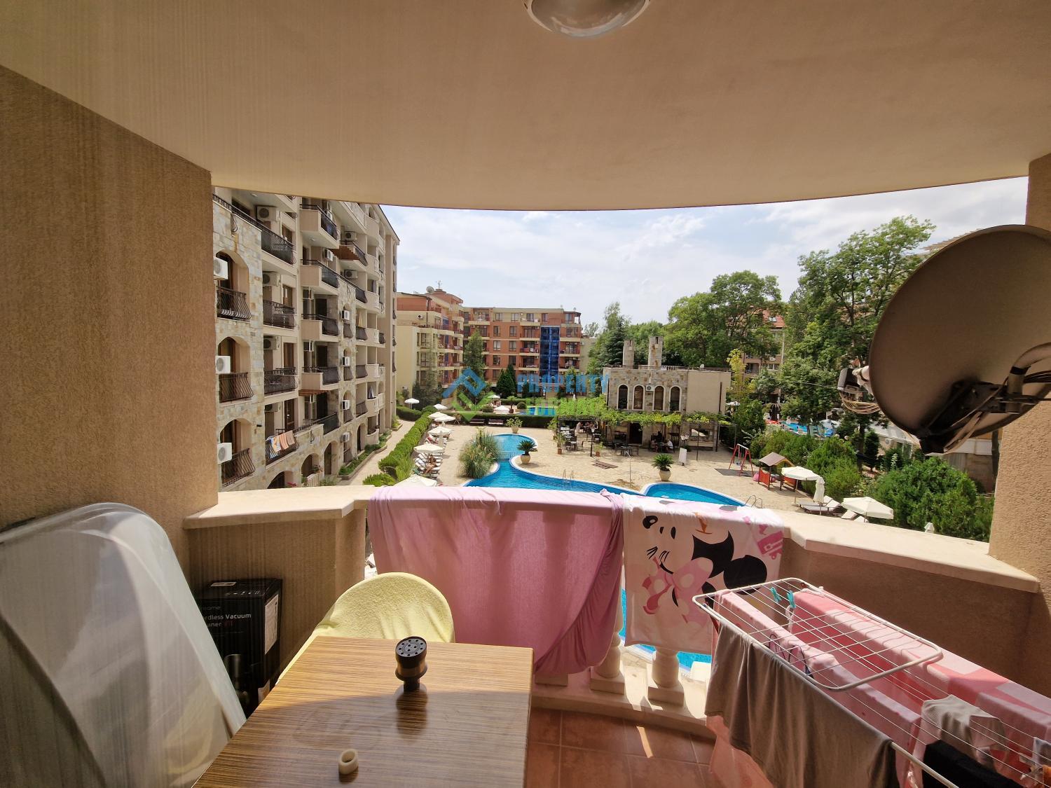 Продается двухкомнатная квартира в красивом комплексе Kalia, Солнечный берег. Квартира имеет площадь 60 кв.м., расположена на 3 этаже. Она состоит из гостиной с кухней, спальни, ванной комнаты и террасы. Красиво обставленный, создающий ощущение комфорта.