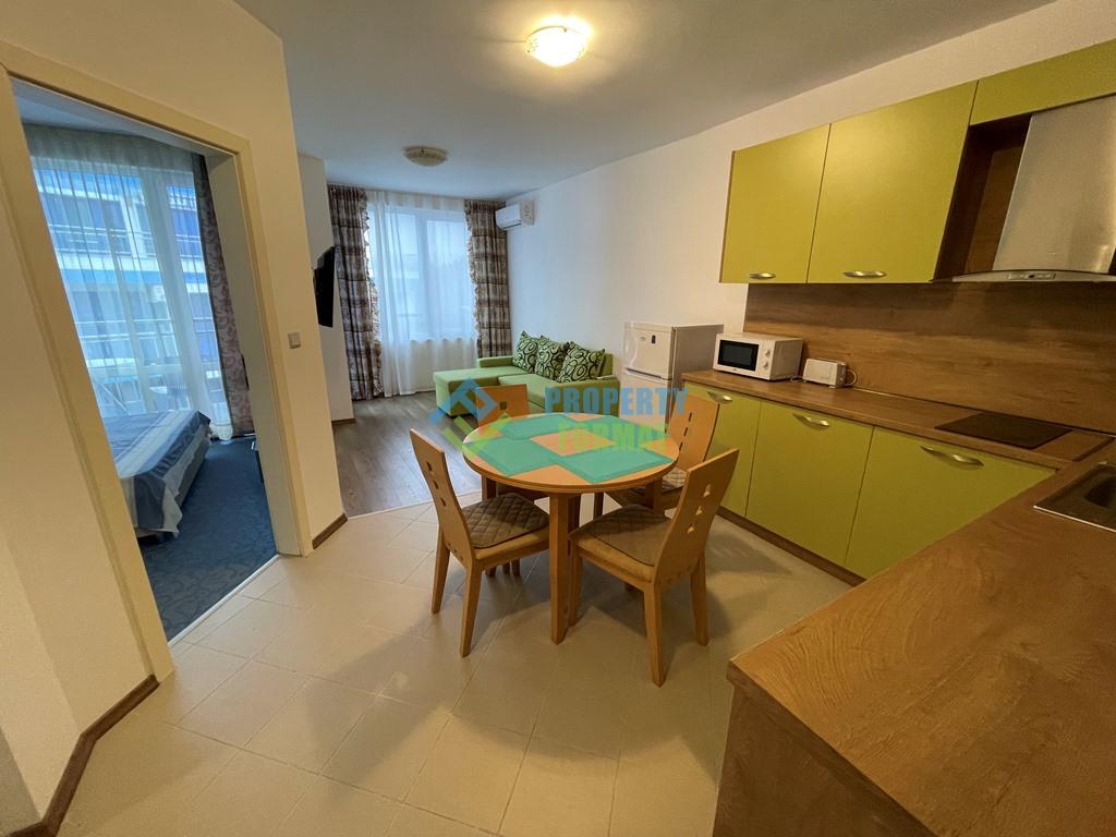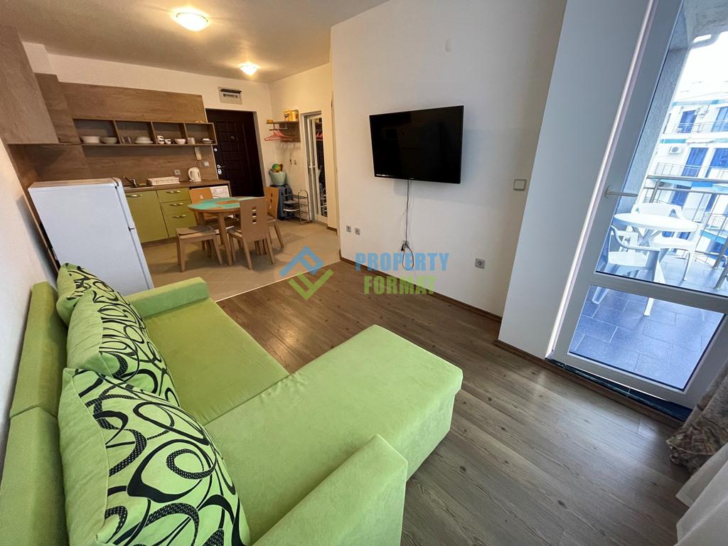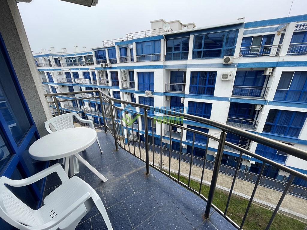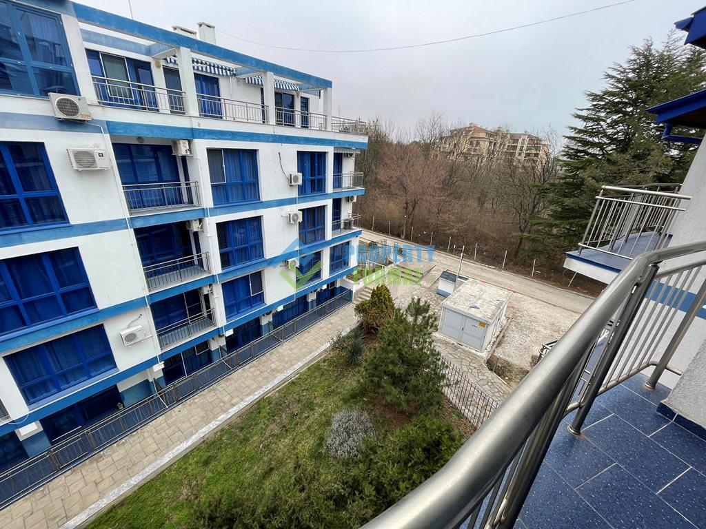 Двухкомнатный апартамент находится в комплексе Blue Bay Palace, который располагается на первой линии в местности Кротирия. Это самое тихое и спокойное место окруженное сосновой чащей, создающее уютную атмосферу.