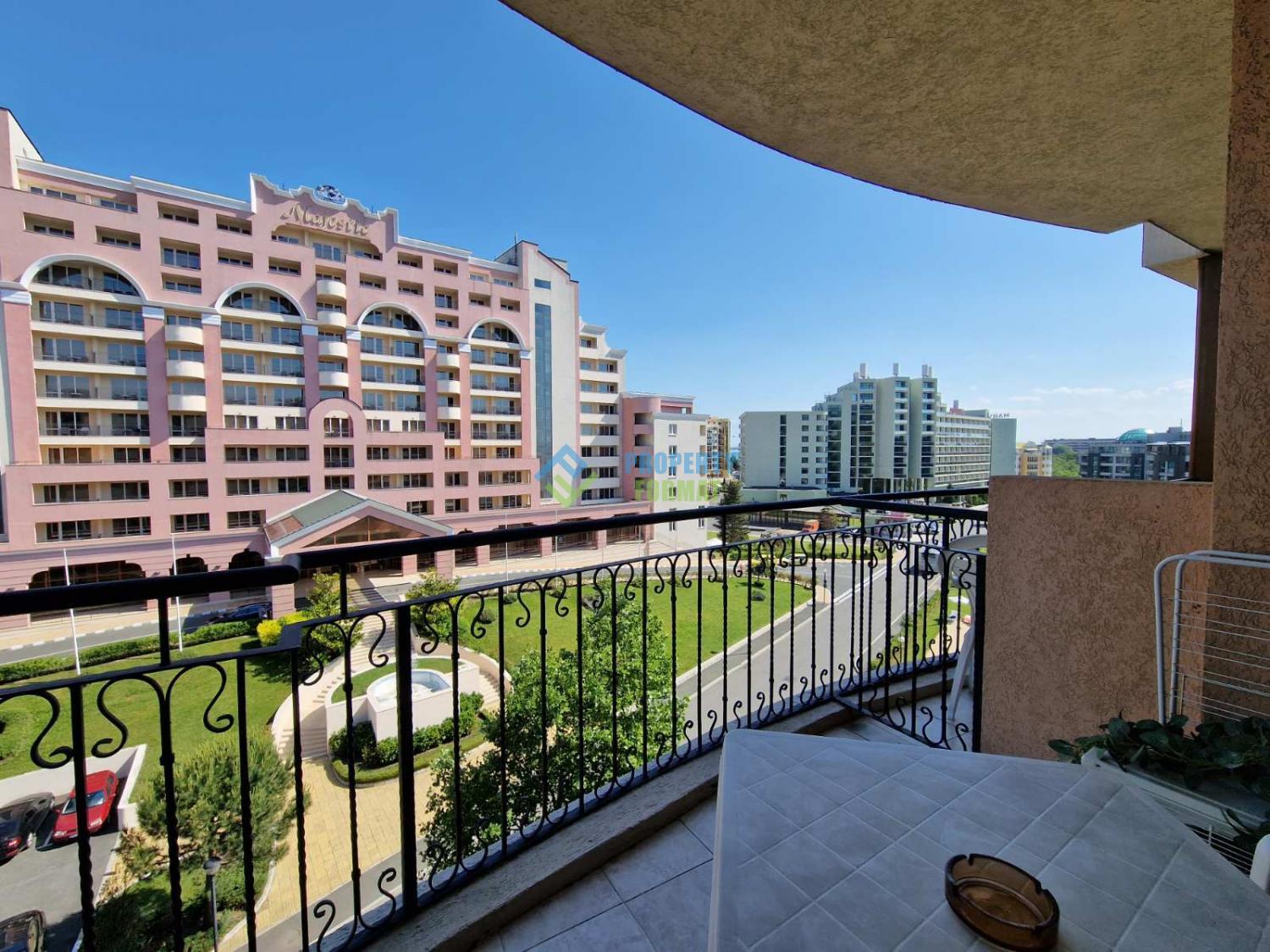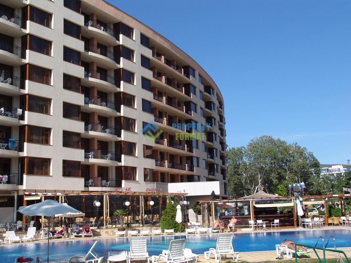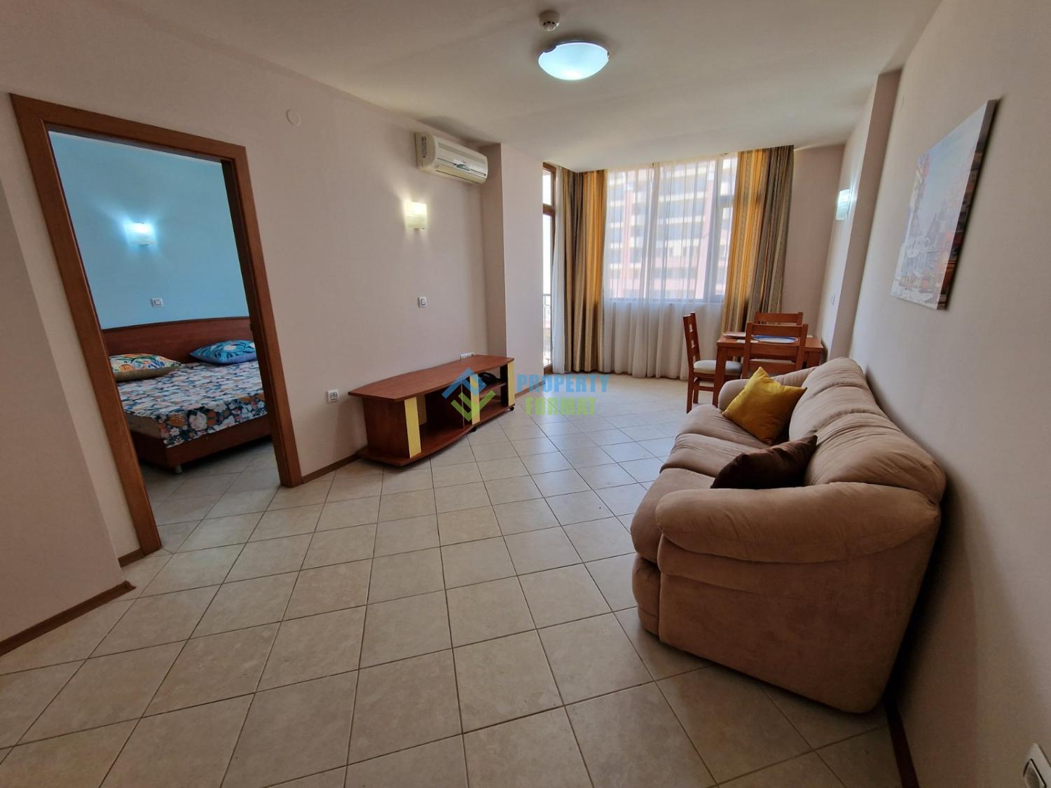 Большая двухкомнатная квартира с видом на бассейн и частичным видом на море, расположена в комплексе Poseidon на настоящей второй линии моря, с легким доступом к пляжу - Солнечный Берег. Квартира расположена на 5-м из 7-го этажа. Из гостиной и спальни есть выход на балкон. Мебель и обстановка в квартире в очень хорошем состоянии.