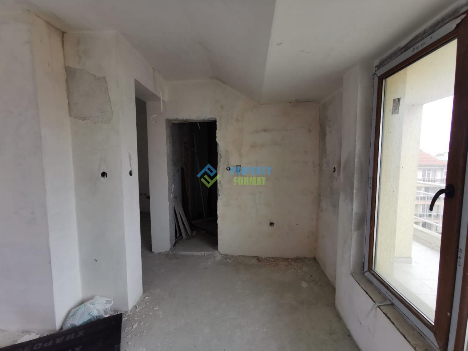 Апартамент продается в черновой отделке, он состоит из прихожей, гостиной с нишей, спальни, санузла и двух террас. Жилой дом находится в очень коммуникабельном районе, возле муниципалитета города Поморие. Напротив здания находится автобусная остановка, супермаркет и училище. В шаговой доступности находится центральная улица, на которой Вы можете посетить развлекательные мероприятия, множество магазинов, ресторанов и банков. Возле центральной улицы находится и прибрежная аллея, летом можно сделать морскую прогулку на двухярусном корабле и пообедать у самого берега моря.
