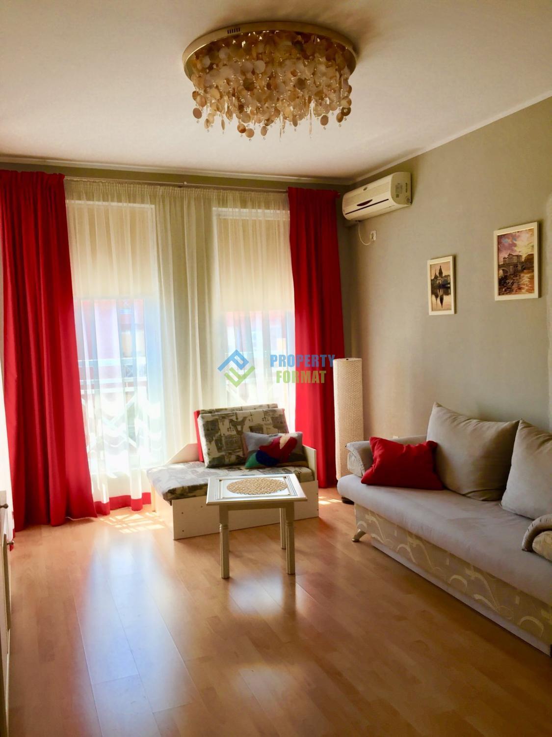 Апартамент находится на 4 этаже, площадь которого составляет 57 кв.м. Квартира очень светлая и просторная, состоящая из гостиной с кухонной зоной, коридора, спальни, санузла и балкона и оснащенная полностью современной мебелью и техникой. В комплексе нет Акт 16.