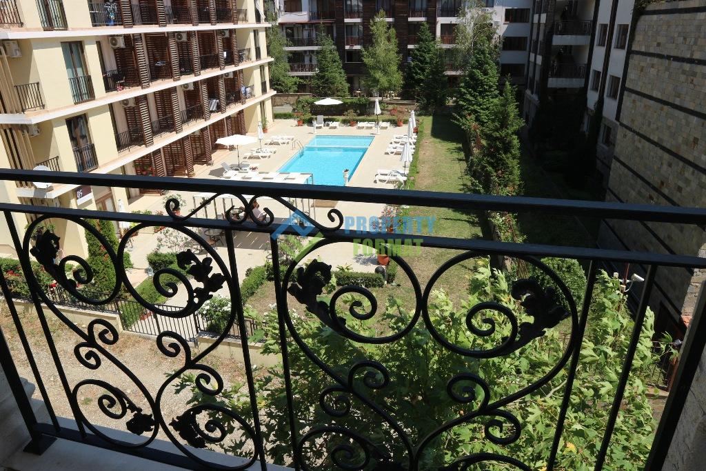 Квартира в прекрасном охраняемом комплексе Artur в Святом Власе. Площадь квартиры 60 квадратных метра, продается полностью с отделкой под ключ, светлая, находится на 2 этаже. Главное преимущество - балкон с видом на зеленые окрестности и бассейн.