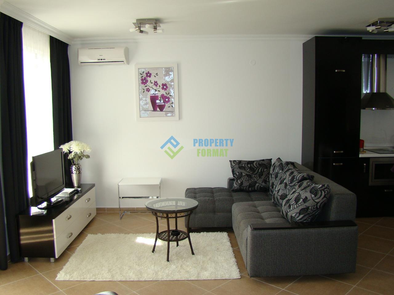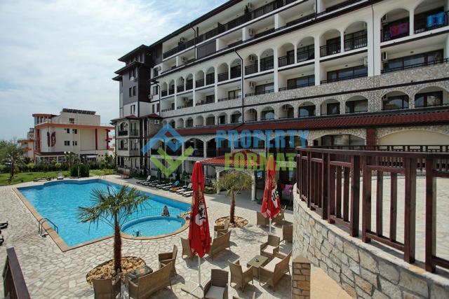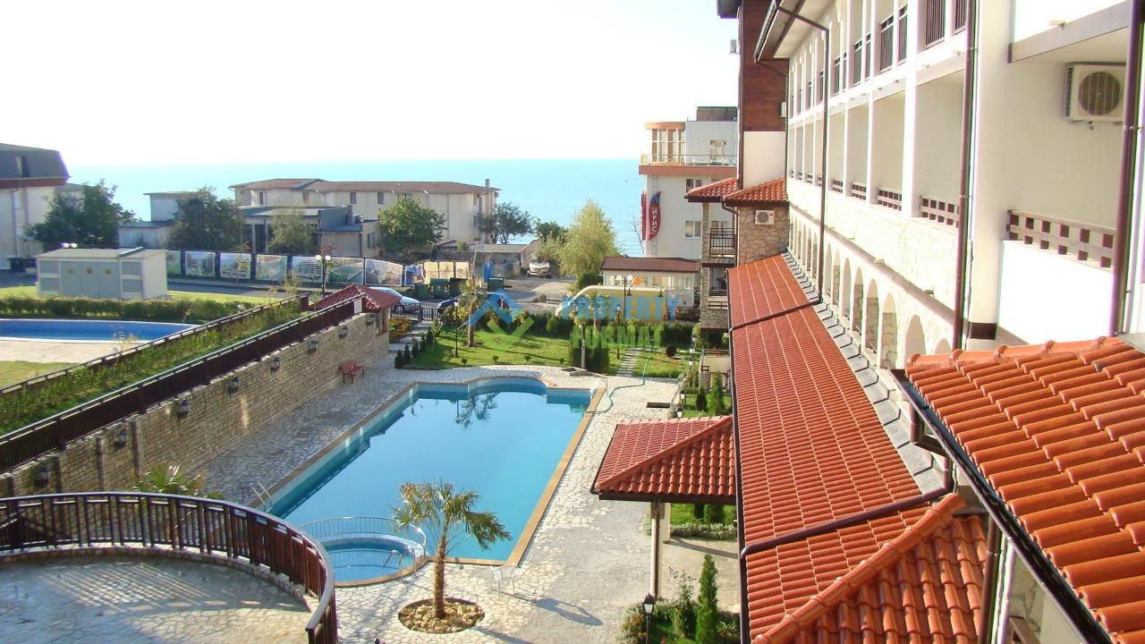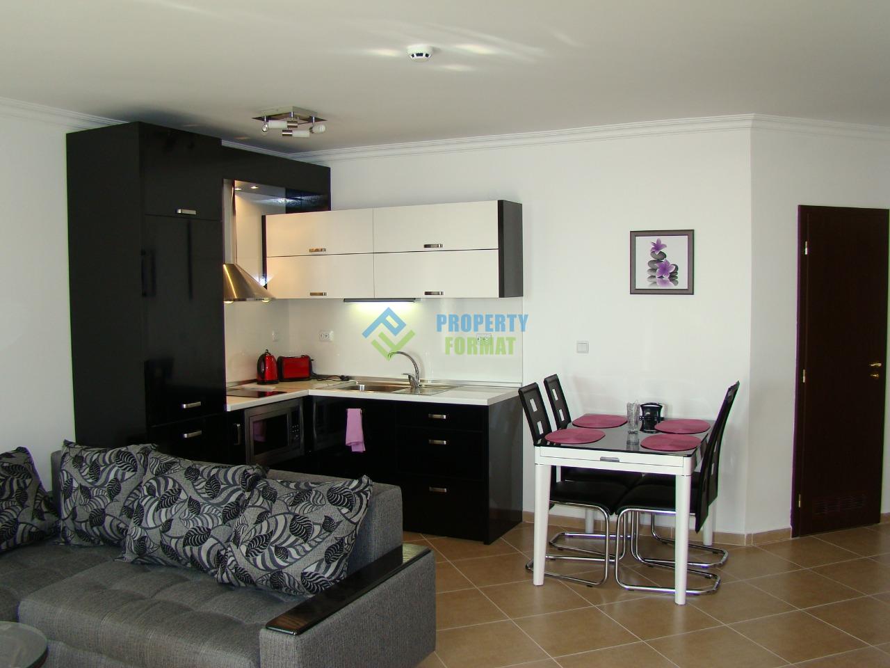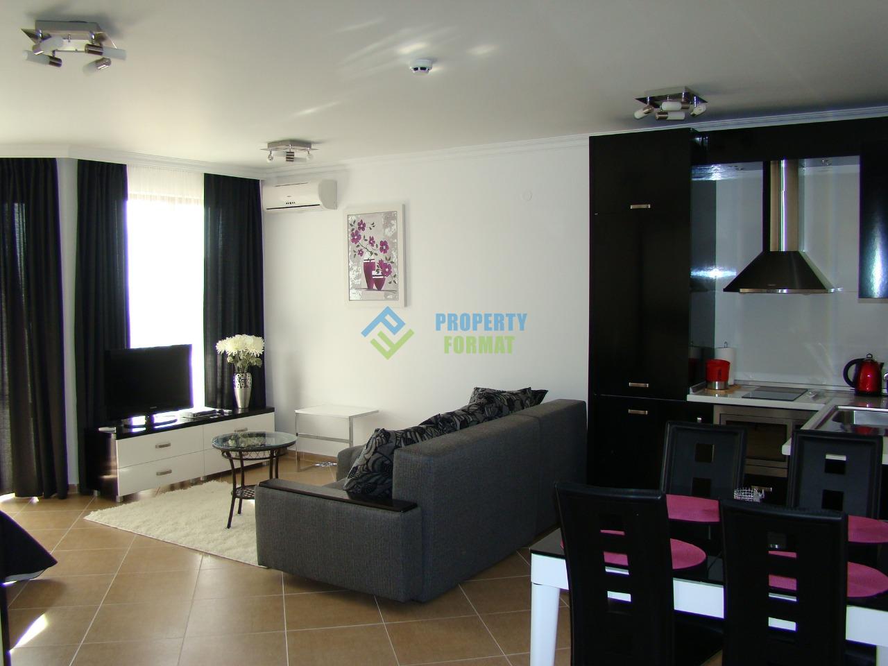 Элегантный апартамент площадью 54 кв.м полностью меблирован. Благодаря наличию достаточного пространства апартамент удалось разделить на две удобные зоны для сна и отдыха, а также кухонный блок. Из бытовой техники в наличии индукционная плита, вытяжка, свч печь, электрочайник, тостер, телевизор, кондиционер. С балкона открывается прекрасный вид на залив Солнечного берега и старинный город Несебр.