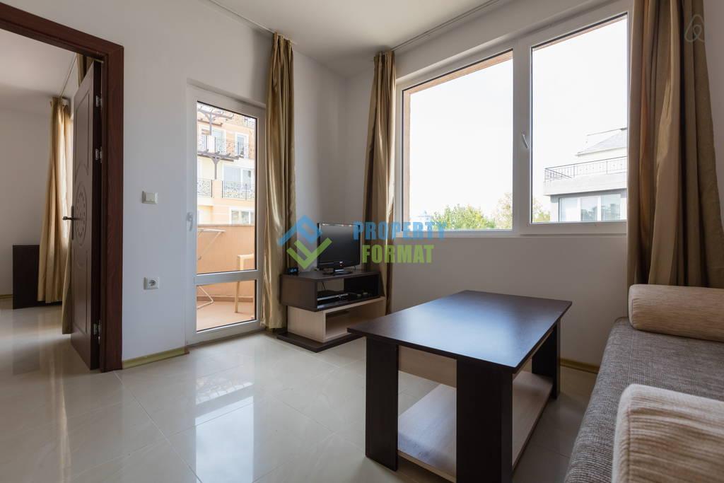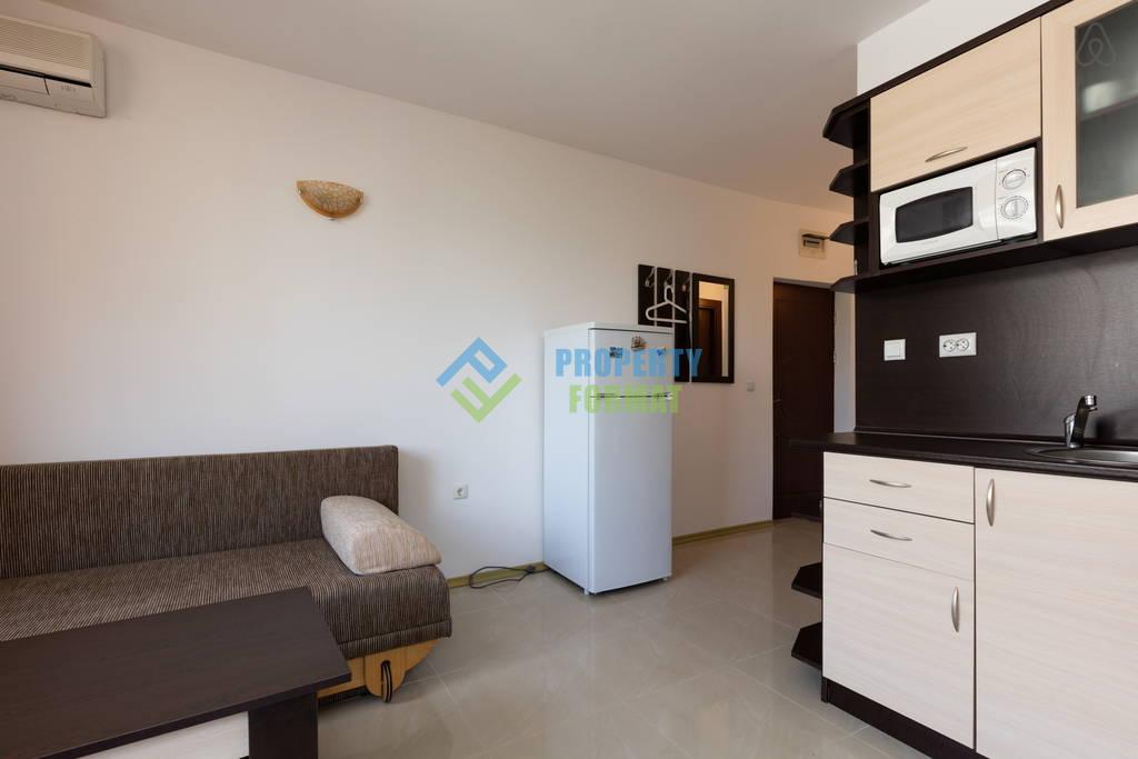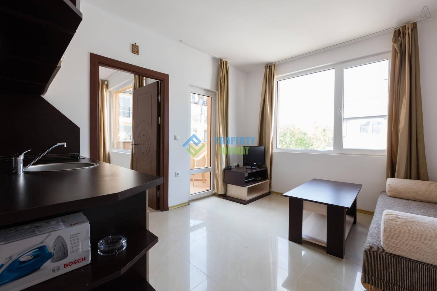 Продаваемая квартира состоит из мини прихожей, светлой гостиной совмещенной с кухонной зоной, отдельной спальни, санузла и просторной террасы. Апартамент оборудован необходимой мебелью и электроприборами. Санузел оснащен привычной сантехникой. Выход на уютную террасу предусмотрен из обеих комнат квартиры.