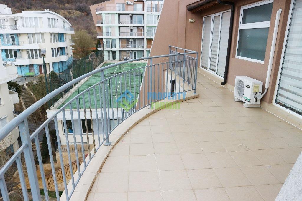The apartment has a total area of 145 sq. m. it is located on the 5th floor and has a rather stylish furniture. The apartment has a large terrace with views of the endless fields, mountains and forests. All furniture and appliances remain in the apartment.