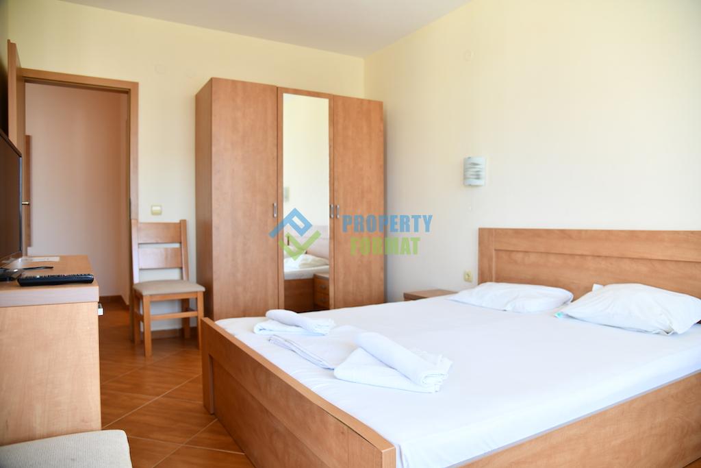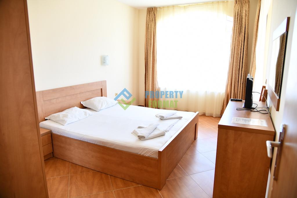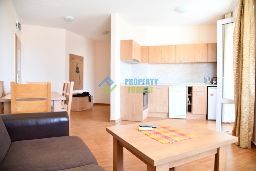 One bedroom apartment furnished with furniture, necessary for comfortable stay and rest, air conditioning with heating and cooling. Kitchen unit equipped with built-in appliances. In each room to access a TV with cable channels. On the terrace you can relax at a table, enjoying pleasant views of the complex and the surrounding area.