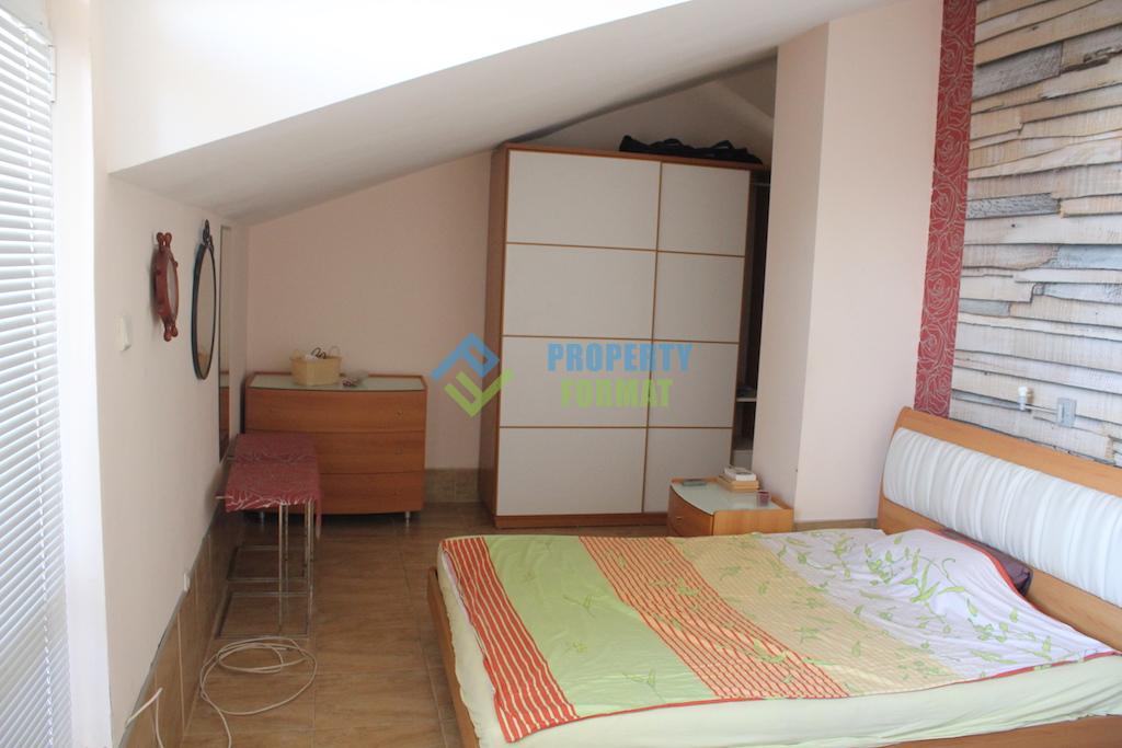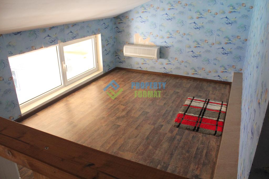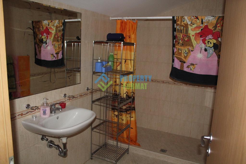 Excellent and comfortable apartment of 119 sq m situated on the second and third floors of a three storey building. The apartment has two bedrooms, one of which is for children with a bed, wardrobe, chest of drawers and a TV. In the adult bedroom has two double beds, a wardrobe and a chest of drawers. The kitchen is combined with living room has the necessary furniture and appliances. The apartment has two bathrooms on each floor. The spacious terrace offers a great view of the sea and the surrounding area of Ravda. Buying an apartment in Bulgaria, you have a great place to stay and residence on the Black sea, with the prospect of a bright future, investing in themselves and their children.
