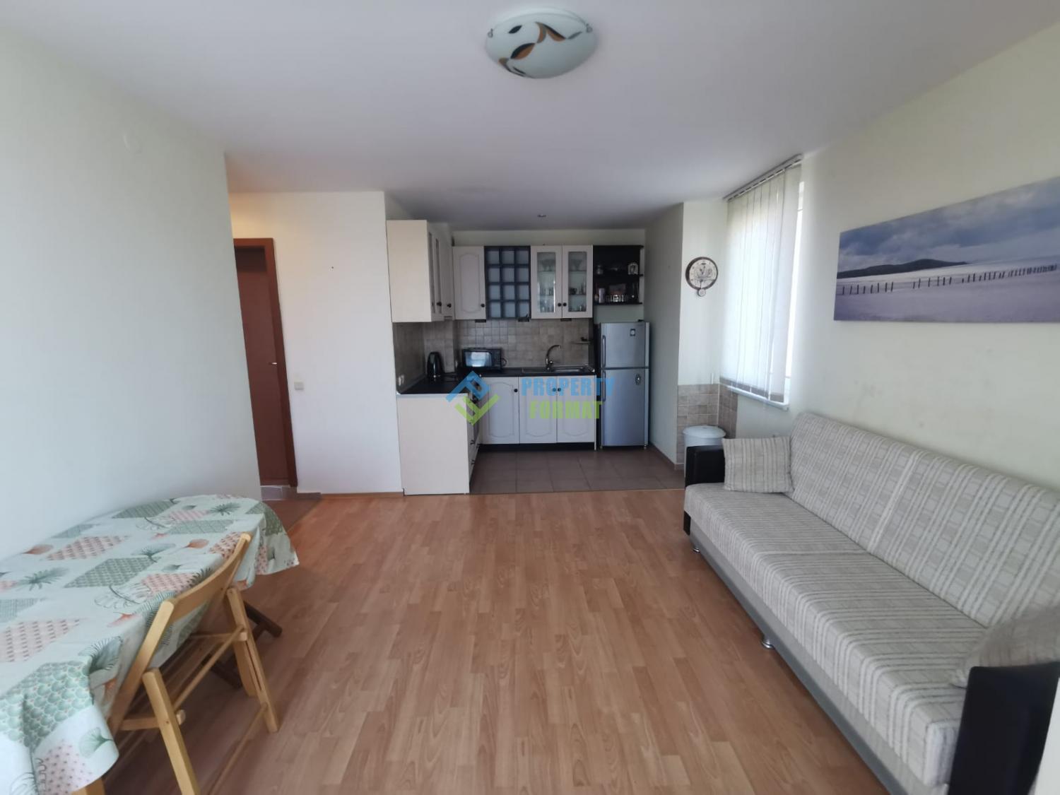 For sale a comfortable apartment in the residential complex Nessebar Fort Club, located next to the water park of Sunny Beach resort, 500 meters from the city center and 800 meters from the coast.
